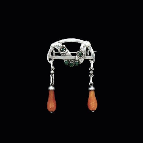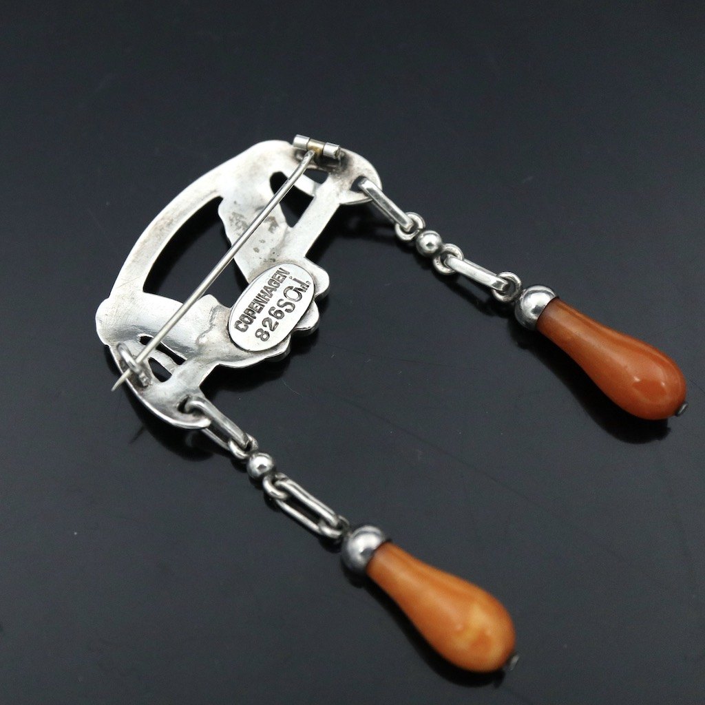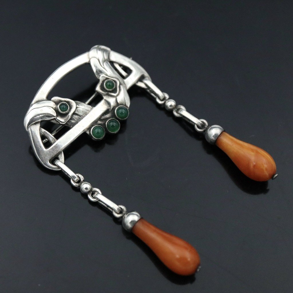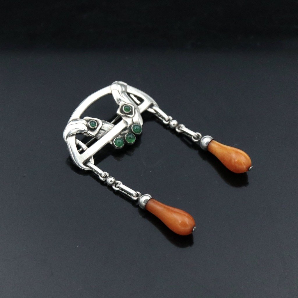 Georg Jensen. Broche i 826s sølv med agat og rav. 1907-14 stempler.Tegnet af Georg Jensen 1866 - 1935