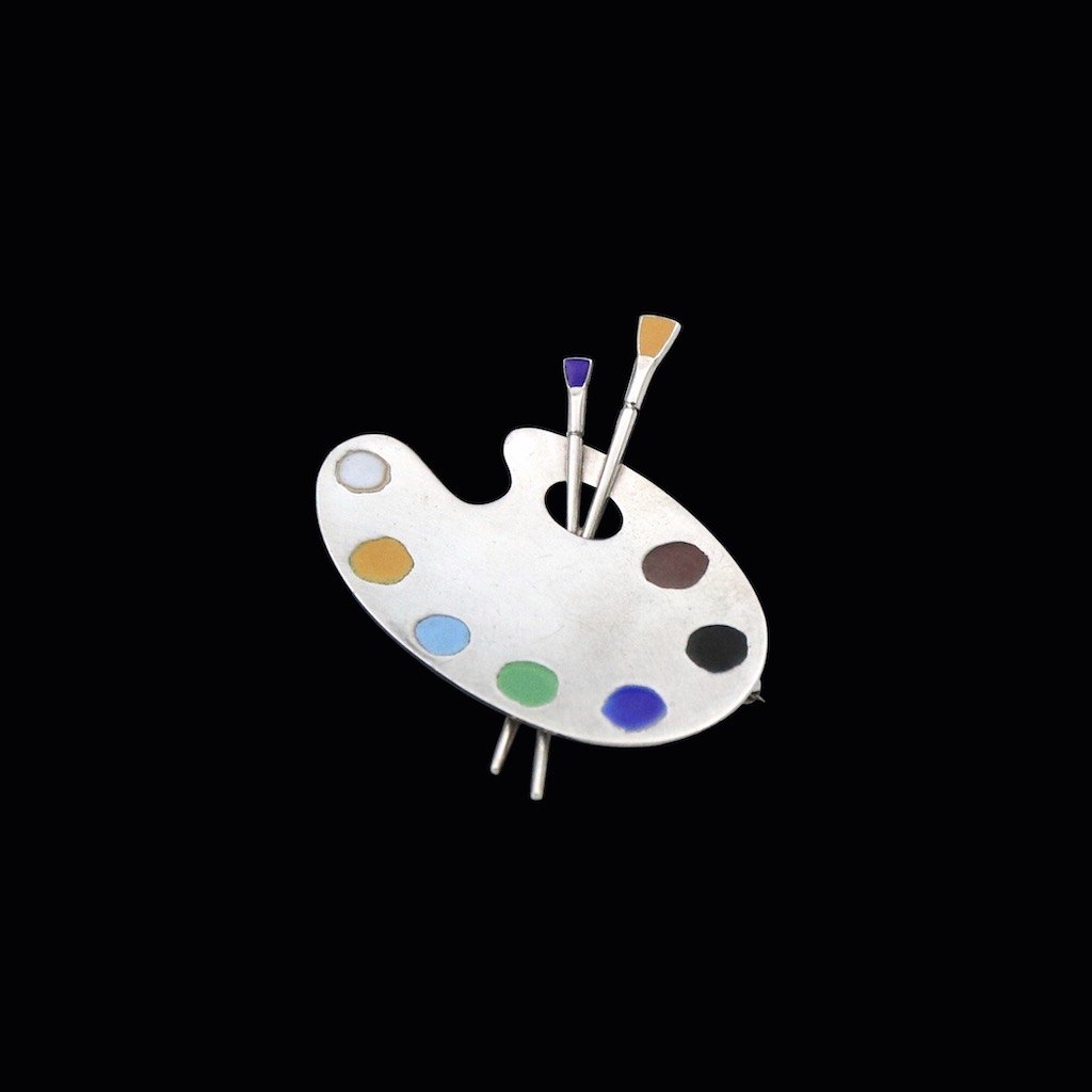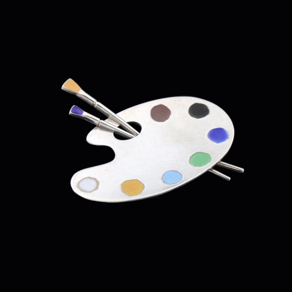 A. Michelsen. 'Palette' Broche i sterling sølv med emalje.Tegnet og udført hos A. Michelsen.
