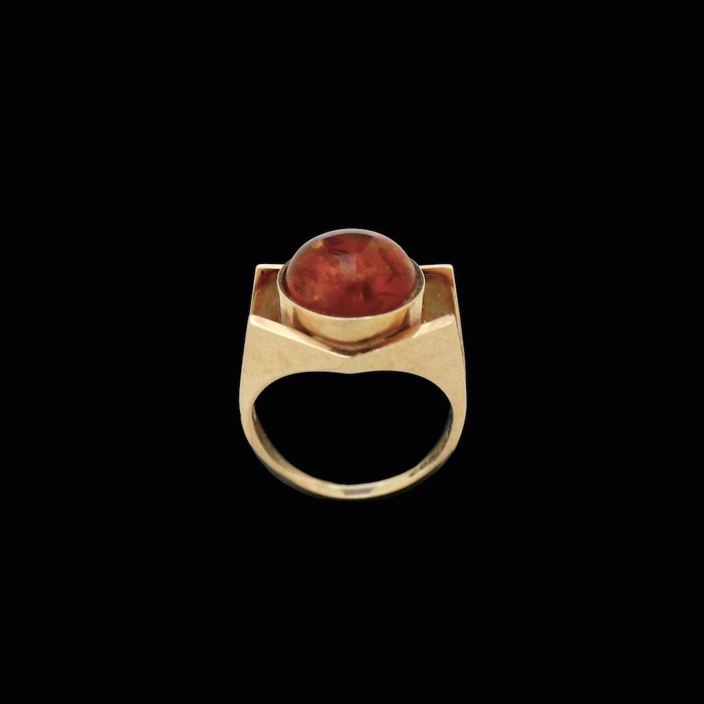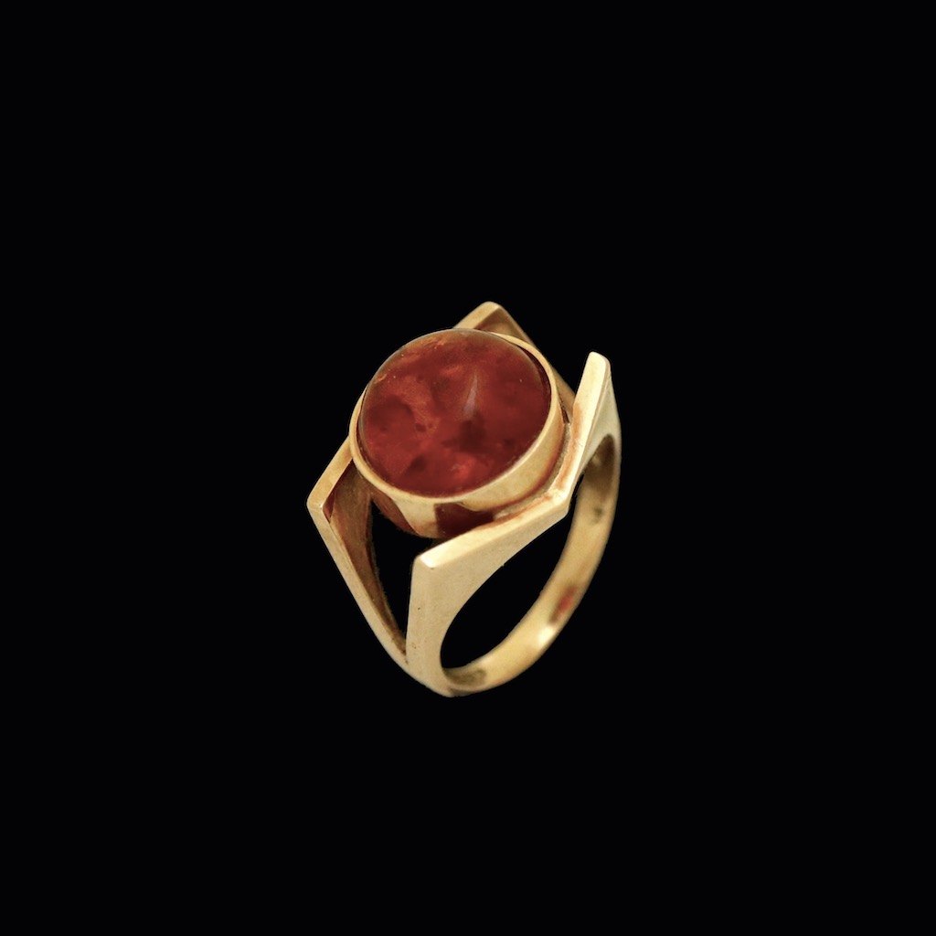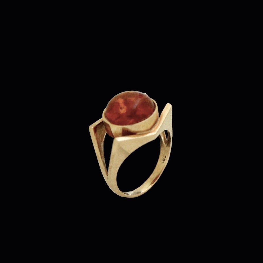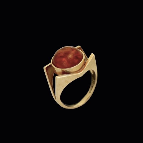 Einer Fehrn. Ring i 14k guld med rav.Tegnet af Einer Bernhard Fehrn - Copenhagen 1962 - 1972.