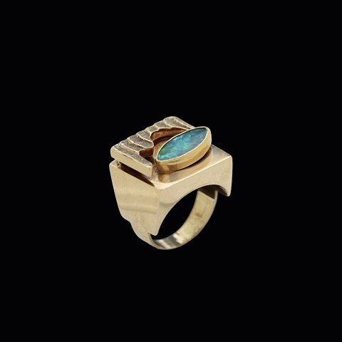 Frank Ahm. Ring i 14k guld med Opal.Tegnet og udført hos Frank Ahm 1970 - 2000, Denmark.