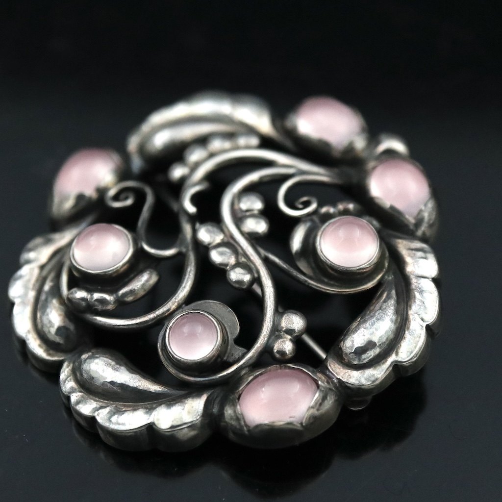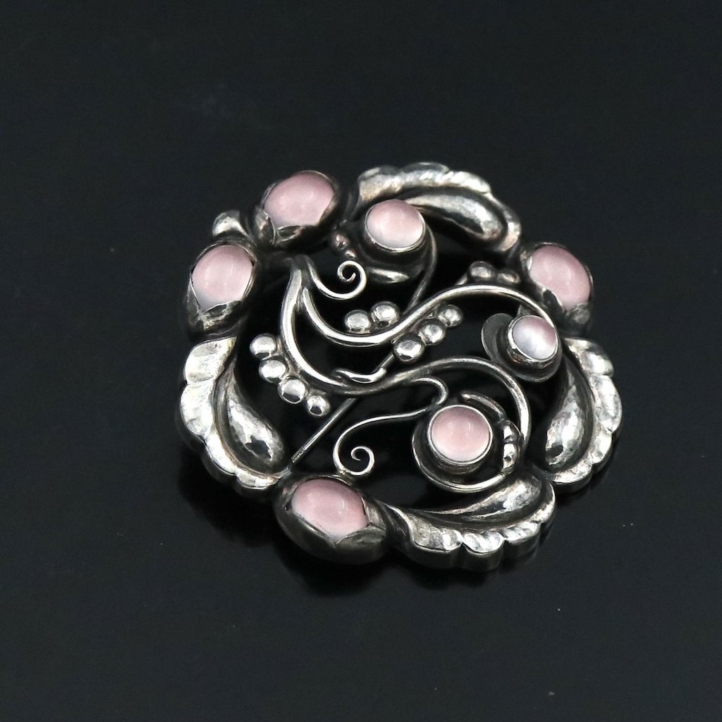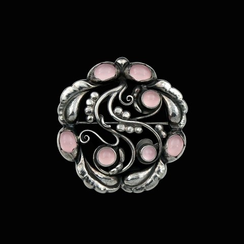 Georg Jensen. Broche i sterling sølv med rosa kvarts #159Tegnet af Georg Jensen 1866 - 1935