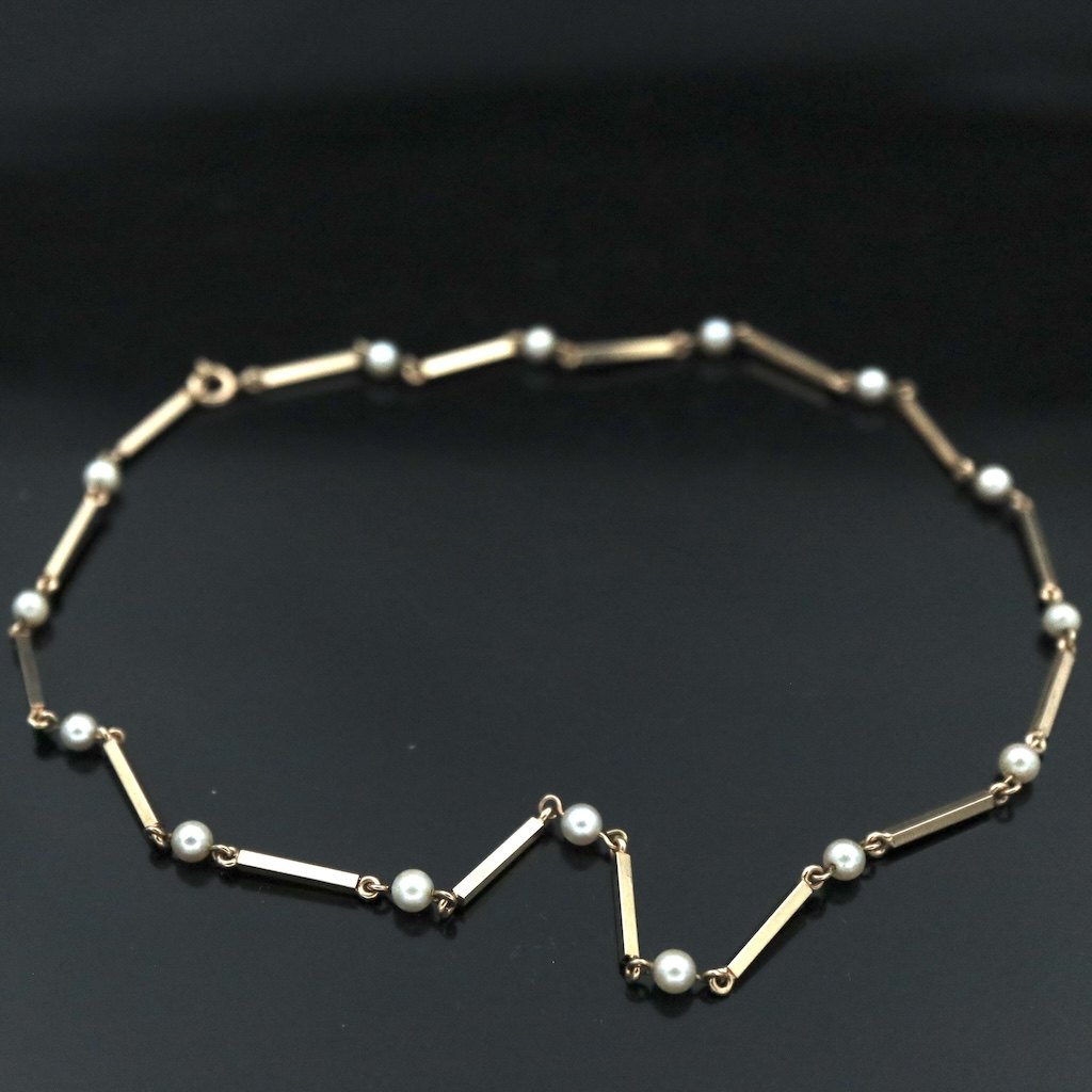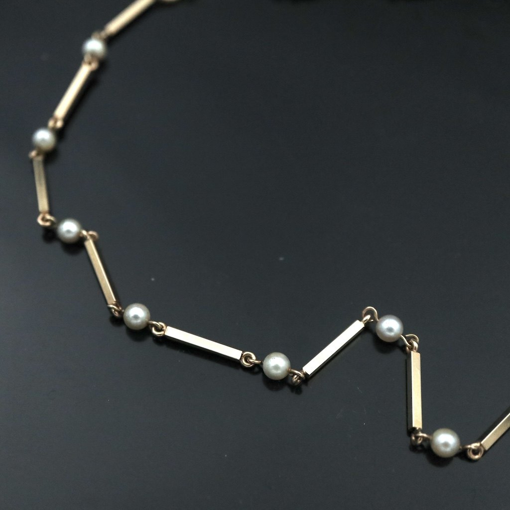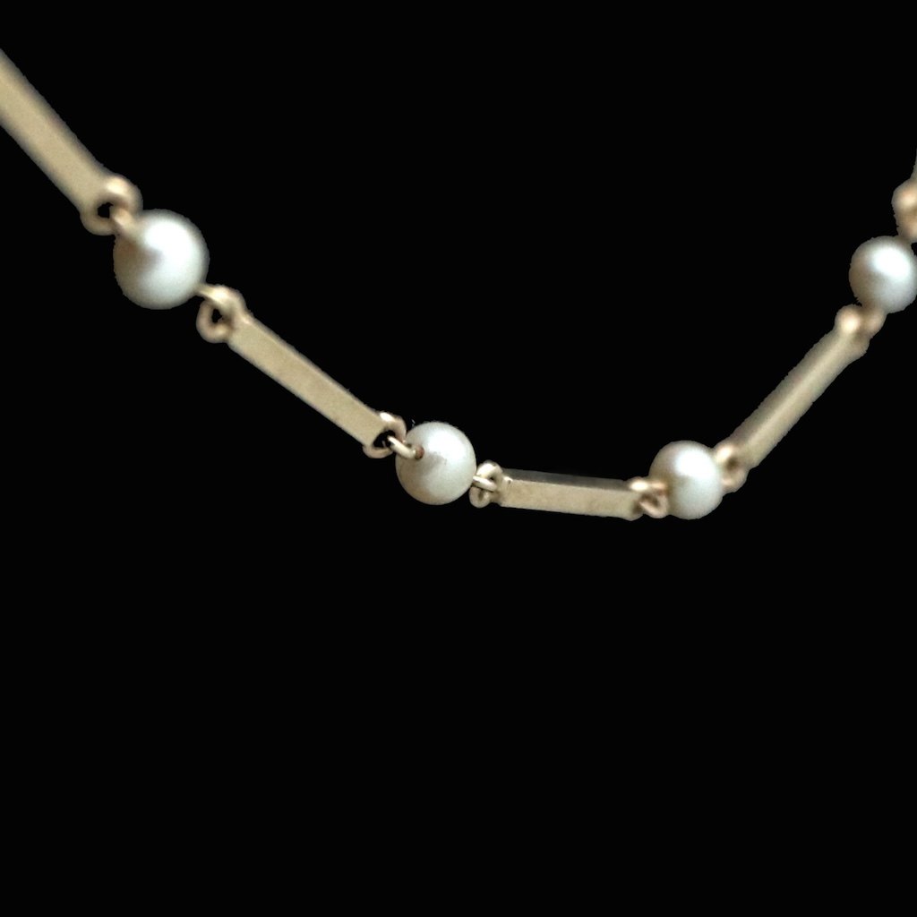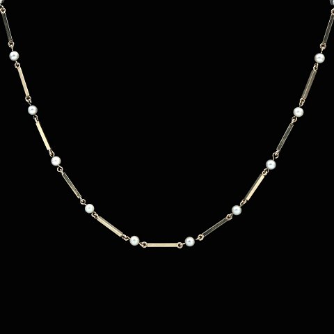 Hermann Siersbøl. 'Pind og Perle' Halskæde i 14k guld med perler.Tegnet og udført hos Hermann Siersbøl Jewelry.