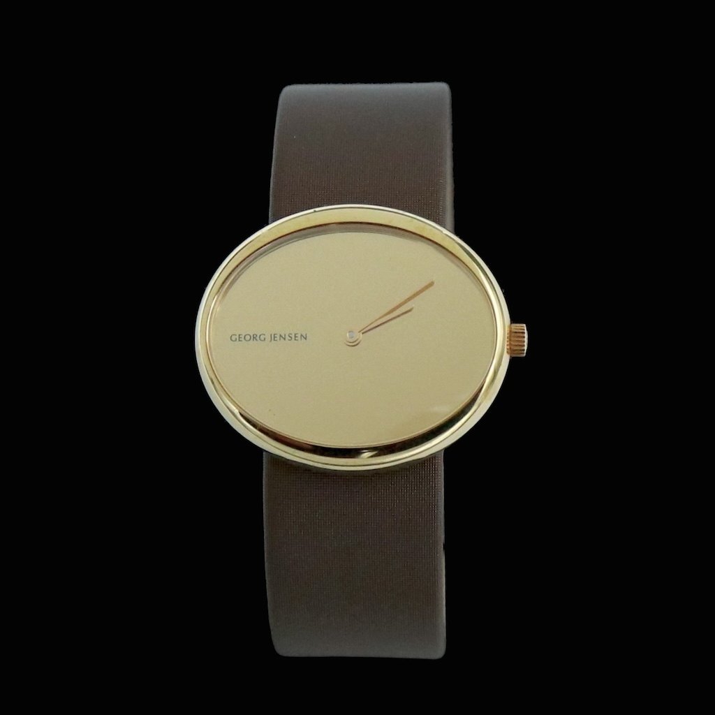 Georg Jensen Armbåndsur i 18k guld #1323 - Oval - Vivianna TorunUrkasse og spænde i 18k guld. Brun Satin Rem.