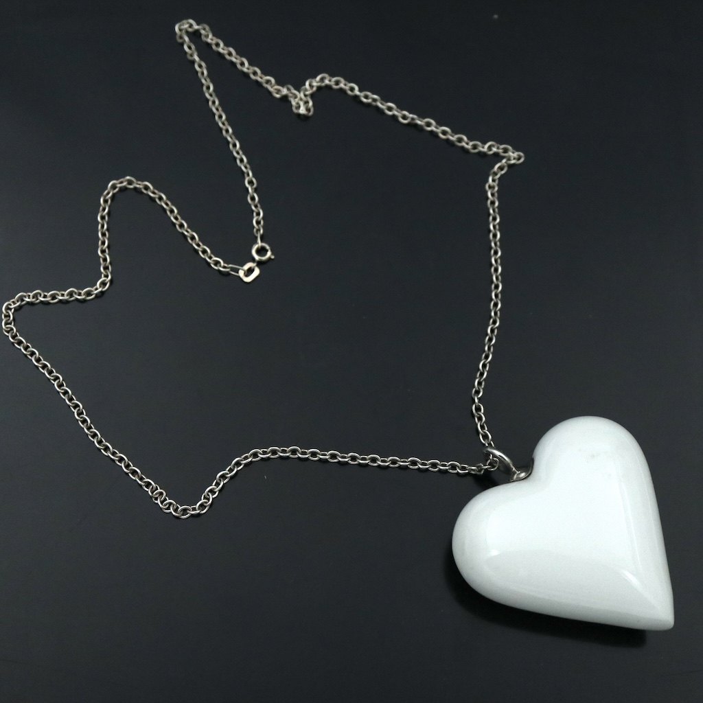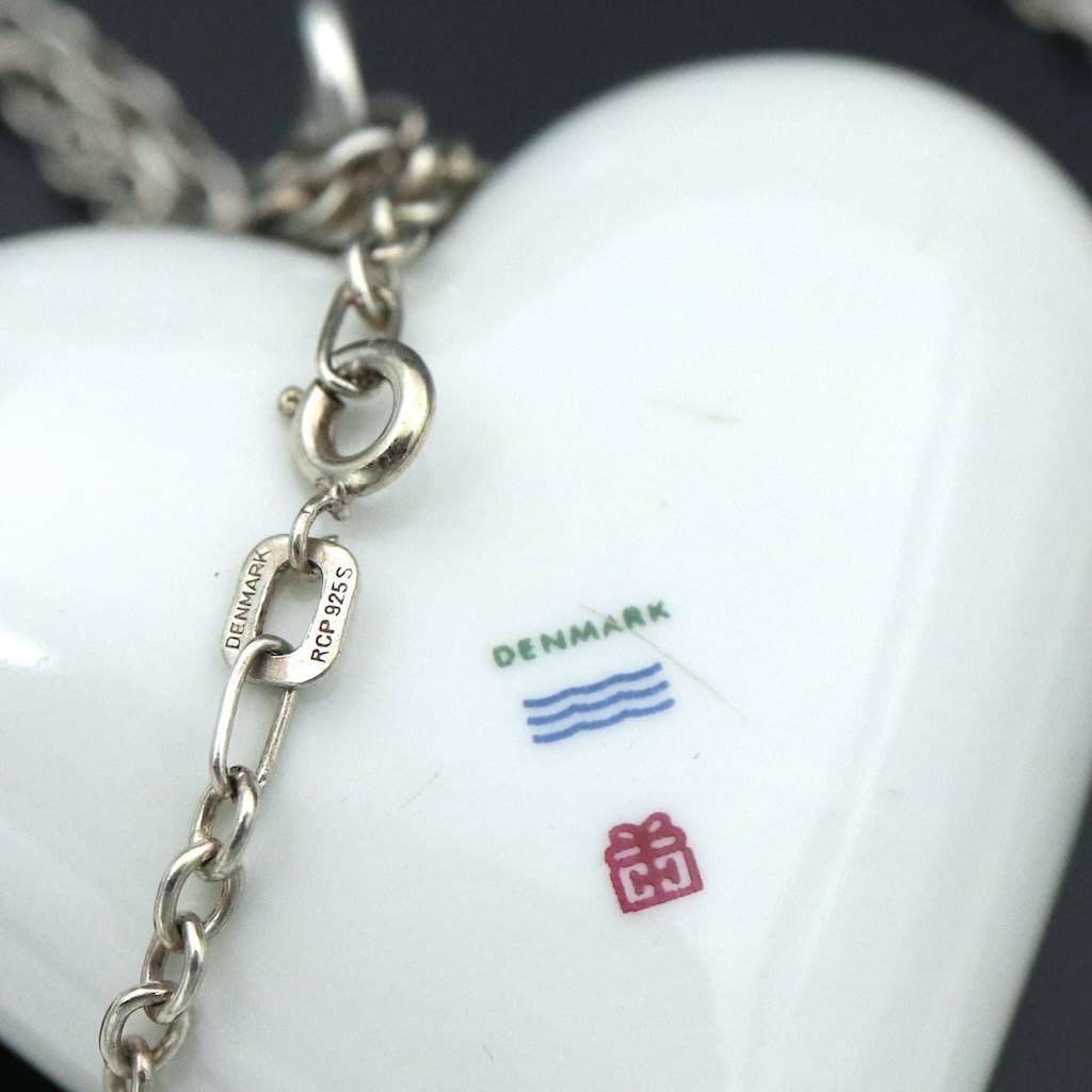 Royal Copenhagen. Hjertevedhæng i porcelæn med sterlingsølv.