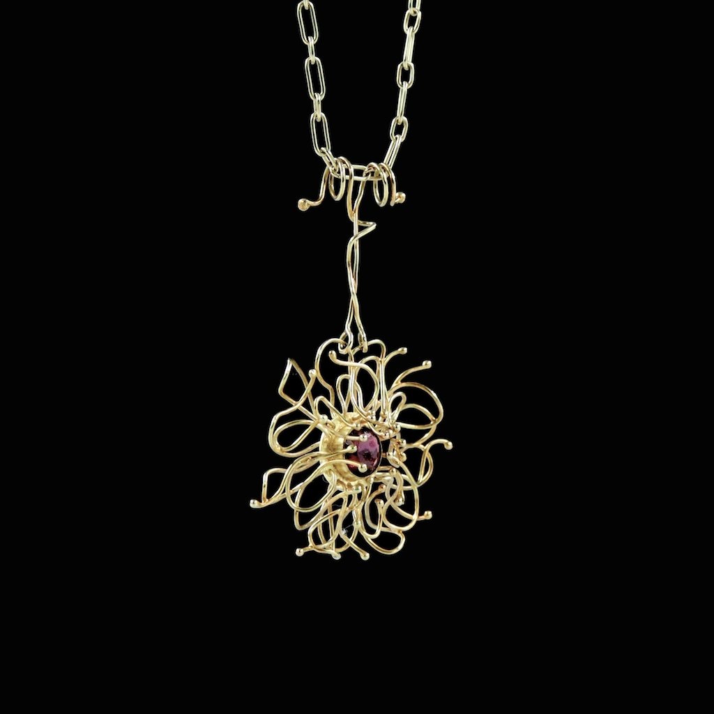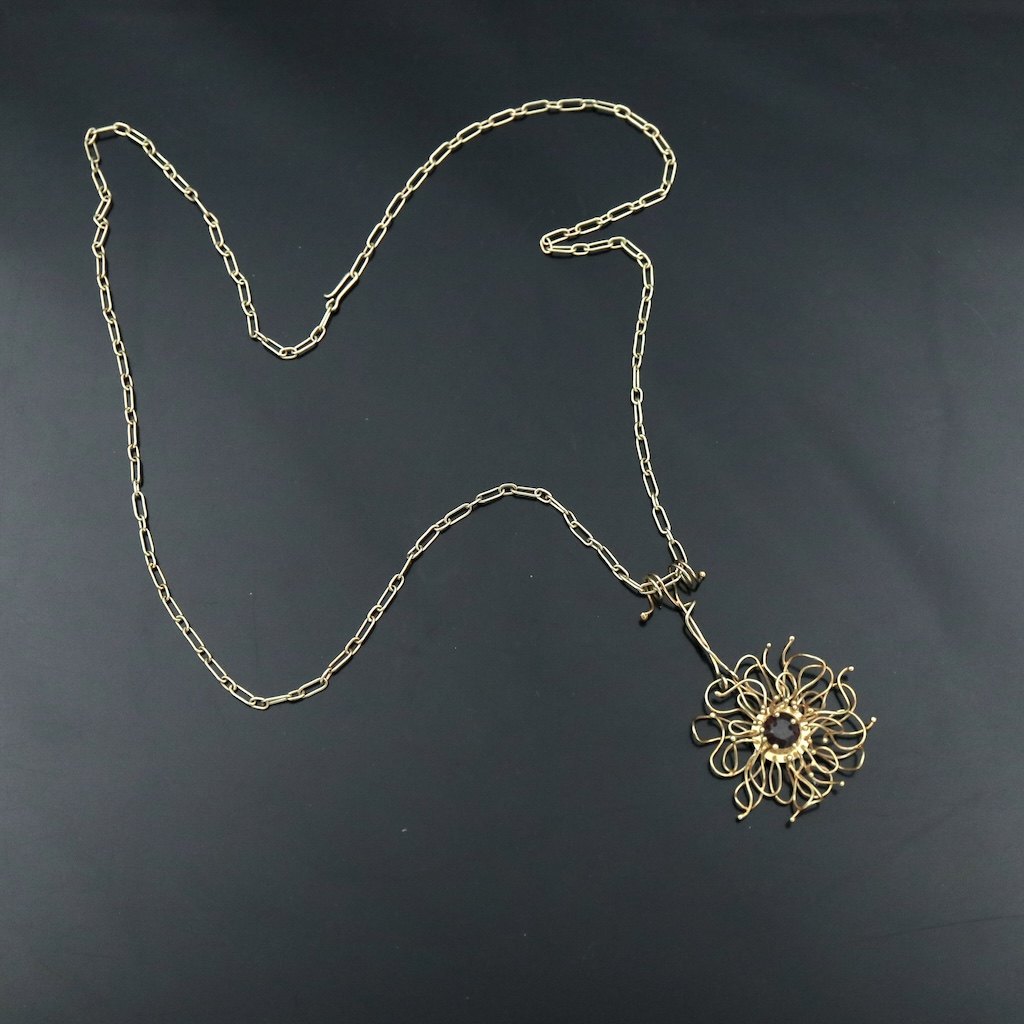 Bent Exner (1932-2006). Halssmykke i 14k guld med ametyst.Tegnet og udført af Bent Exner (1932-2006)
