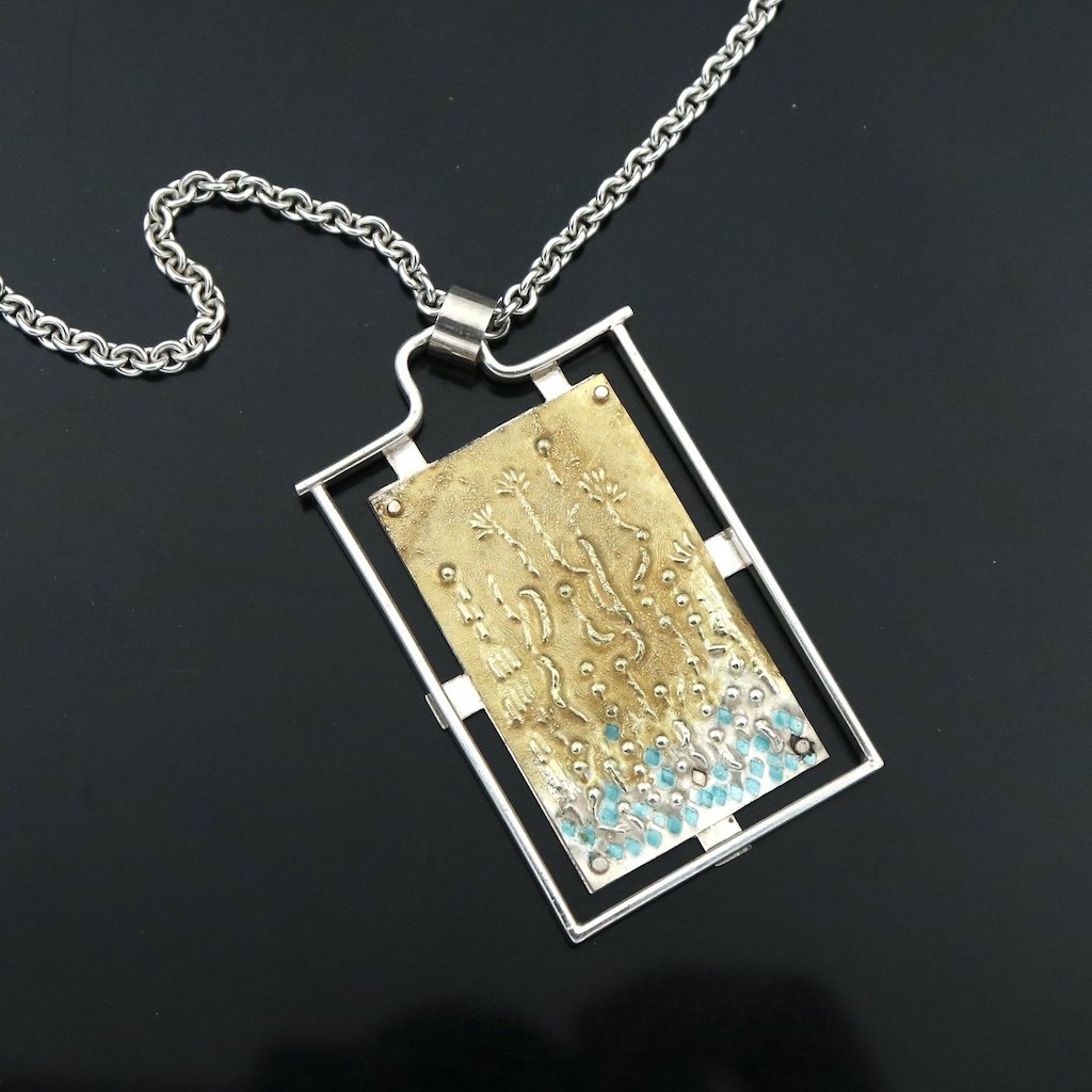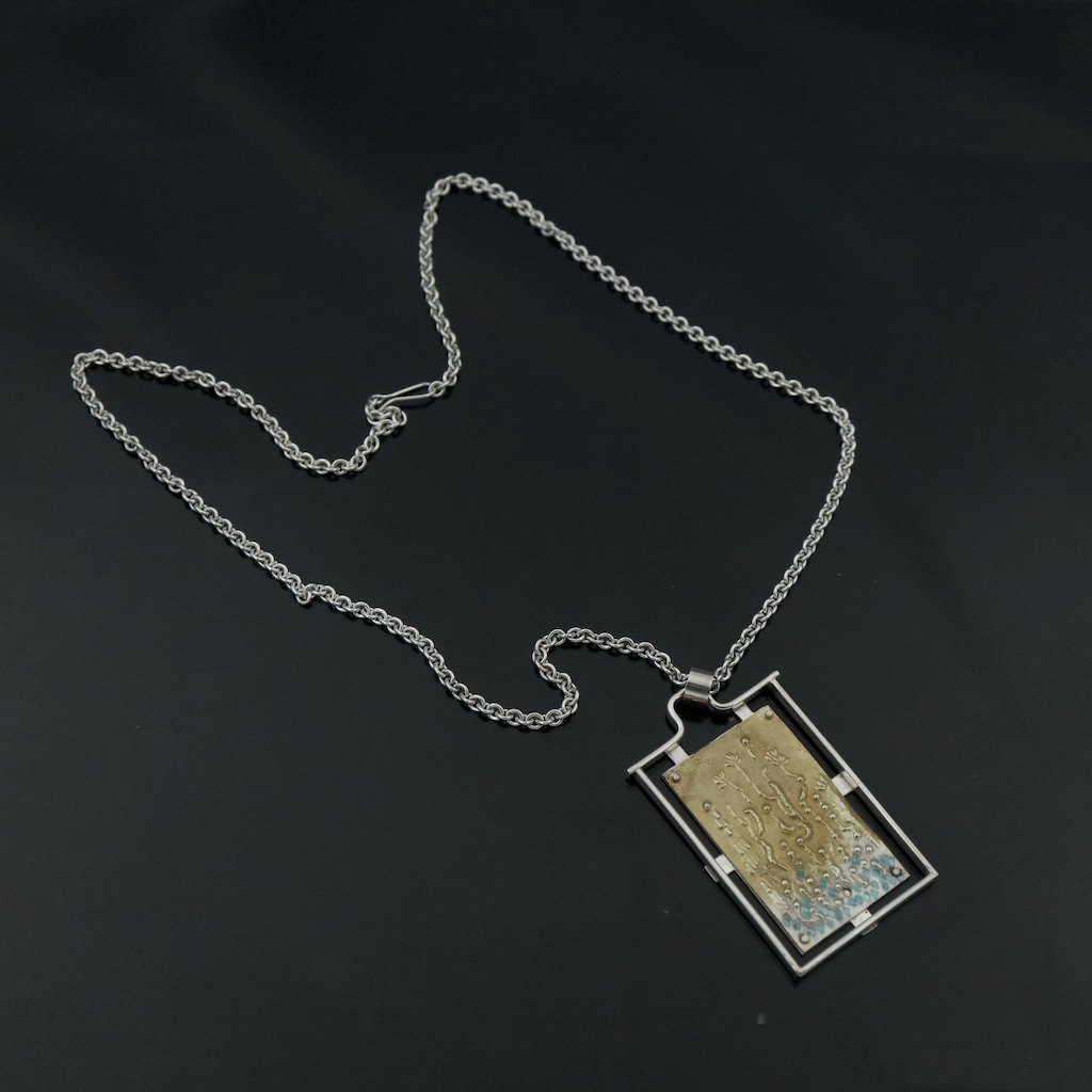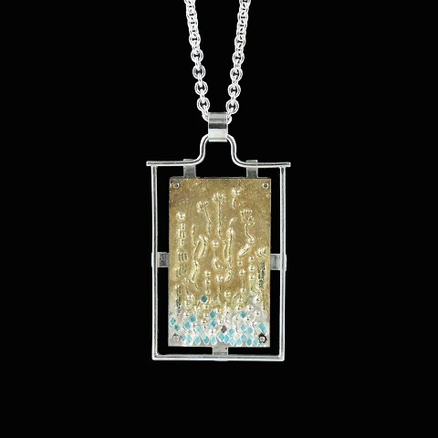 Bent Exner (1932-2006). Halssmykke i delvist lueforgyldt sterlingsølv - 1998.Tegnet og udført af Bent Exner (1932-2006)