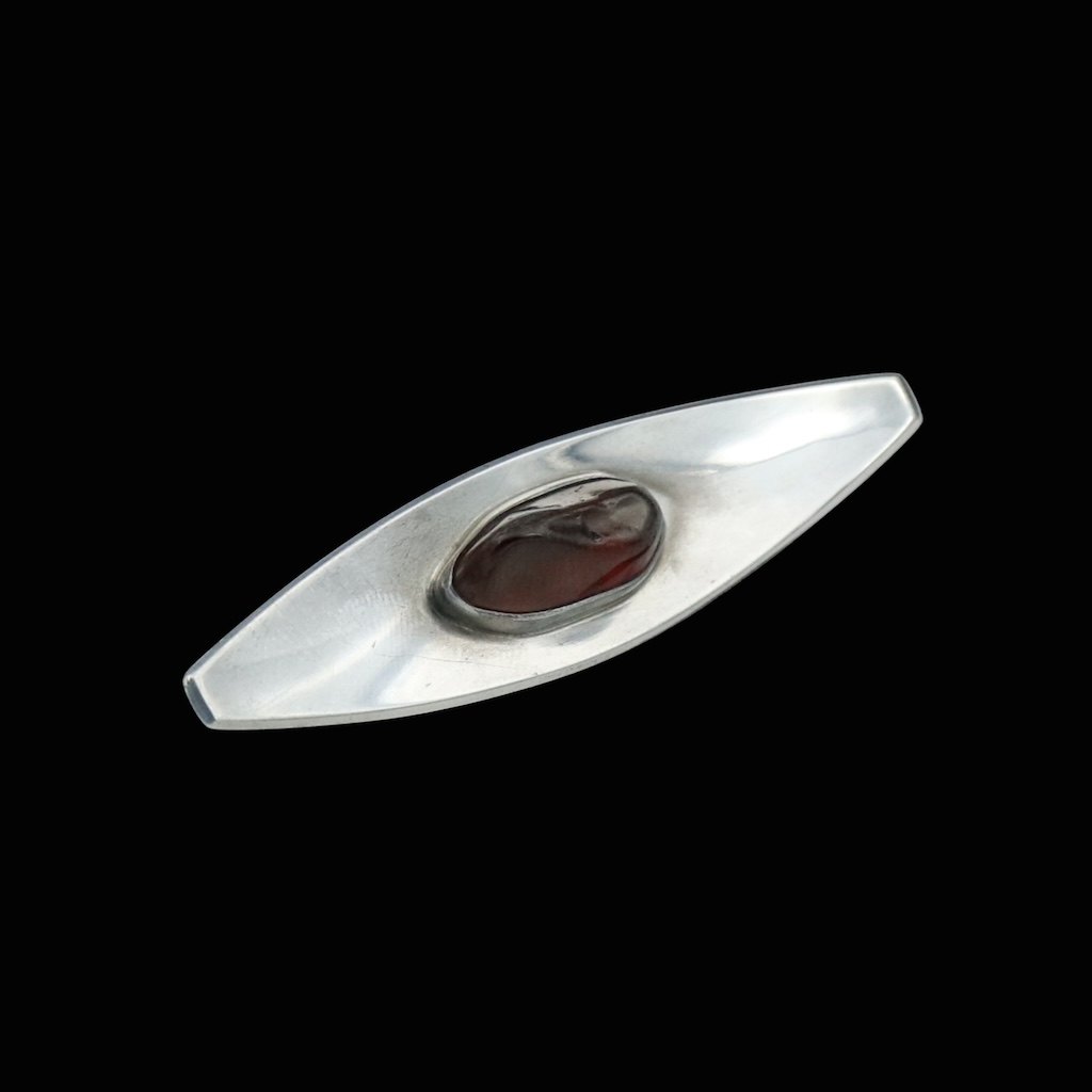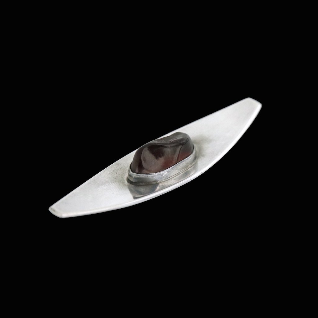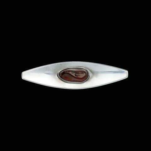 Regnar Leth. Broche i sterling sølv med rav.Tegnet og udført hos Regnar Leth - Copenhagen 1958 - 1974.