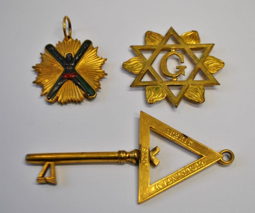 Lot of Masonic signs, 20th century. Including signs from France, Scotland and Sweden.Item number: 27450