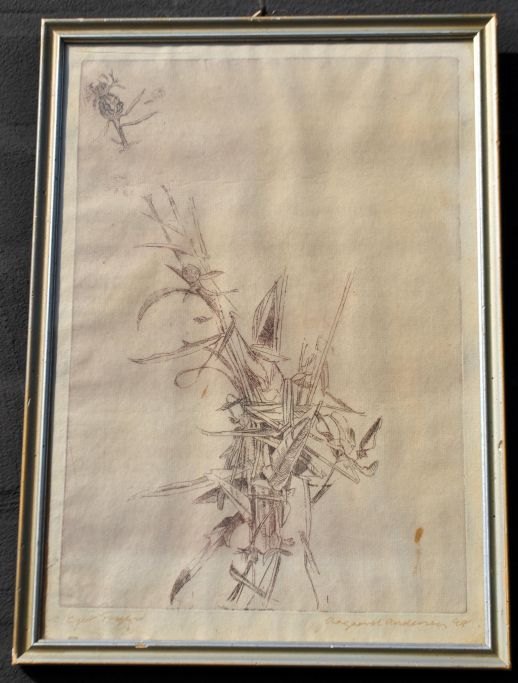Aagaard Andersen, Gunnar (1919 - 1982): A plant. Etching. Own print. Signed. 29 x 21 cm.Framed with silver frame: 35 x 25 cm.