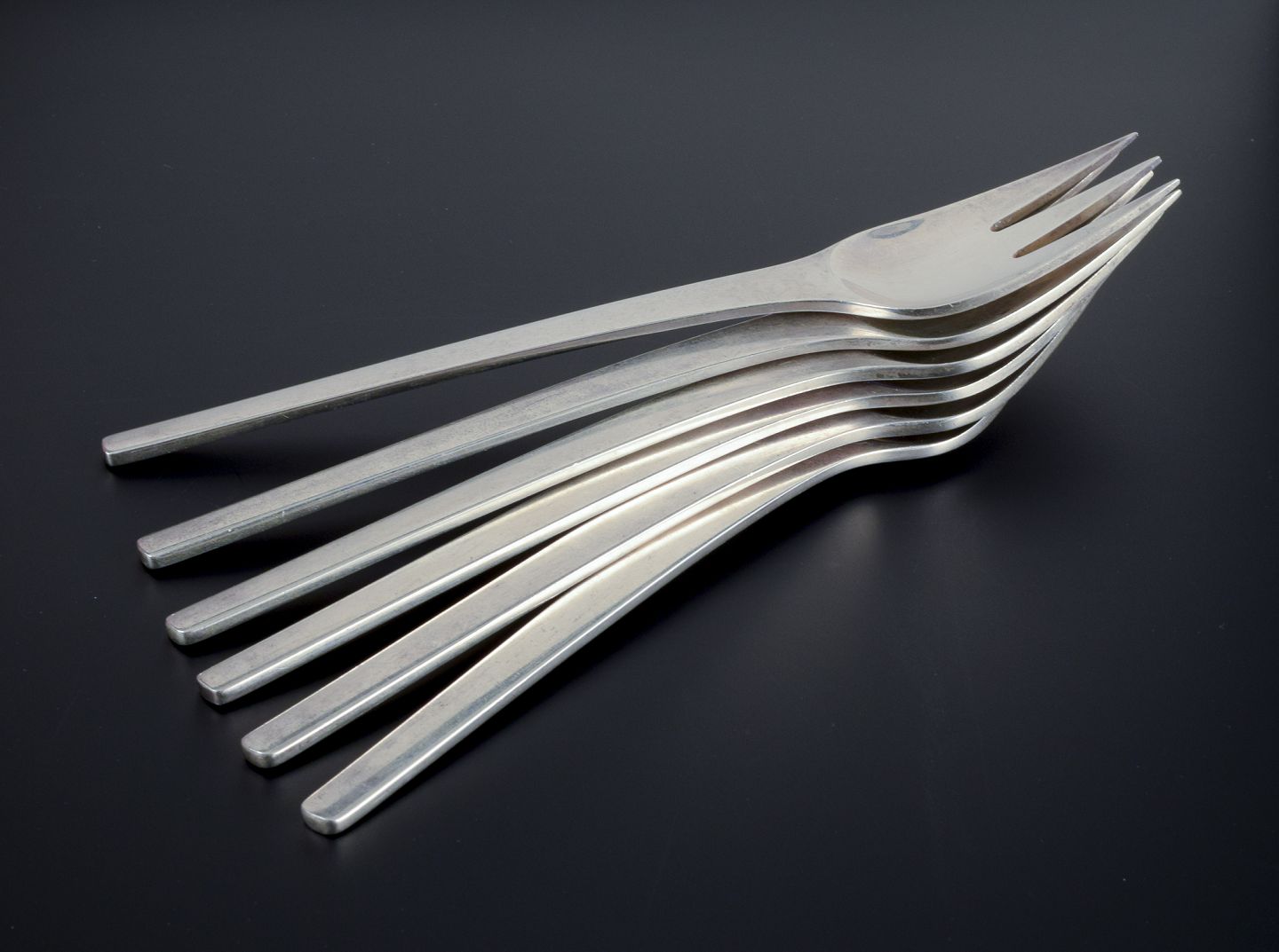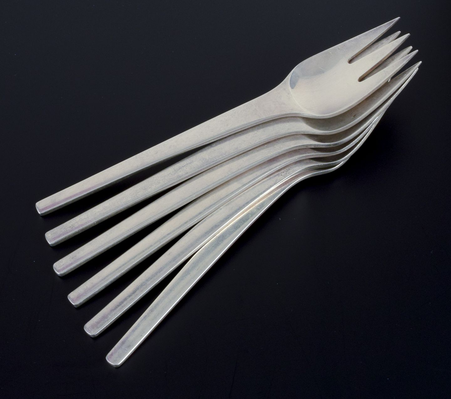 Georg Jensen, Caravel. A set of six lunch forks in sterling silver.Modernist and stylish design.