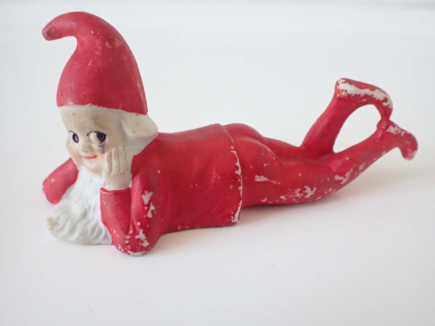 En julestage med et par nisser i i håndmalet biscuit. Tyskland ca. 1930. Højde: 9 cm. Bredde: 10 cm. I flot tidstypisk stand. Pris: 800 kr.En stor liggende håndmalet biscuit nisse. Tyskland ca. 1930. Længde: 10,5 cm. Højde: 5 cm. I flot tidtypisk stand. Pris. 600 kr.