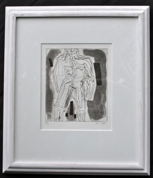 Ravn, Lars (1959 - ) Danmark: Komposition, 1989. Radering. Signeret: LR 1989. 6/10. H: 19,5 cm. B: 17 cm.Indrammet: H: 46 cm. B: 40 cm.