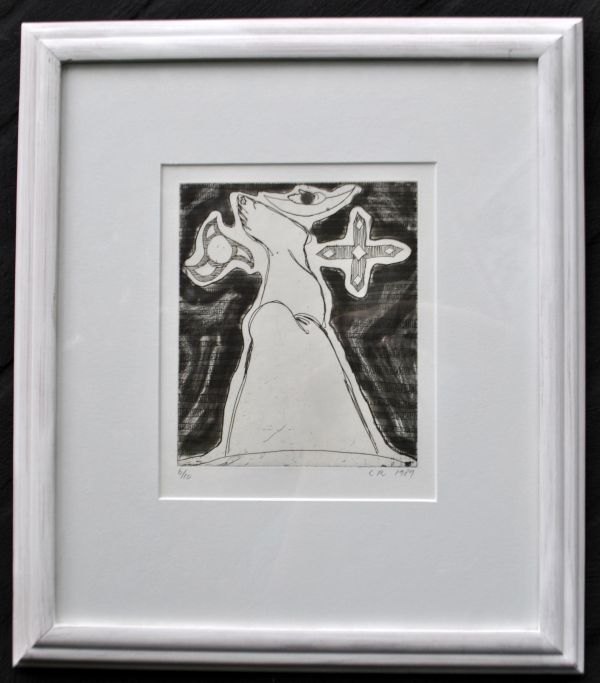 Ravn, Lars (1959 - ) Danmark: Komposition, 1989. Radering. Signeret: LR 1989. 6/10. H: 19,5 cm. B: 16,5 cm.Indrammet: H: 46 cm. B: 40 cm.