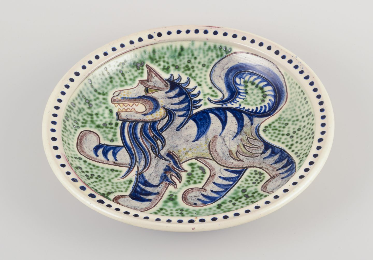 Svend P. Jørgensen, Danish ceramicist.Large unique ceramic bowl with a feline motif.