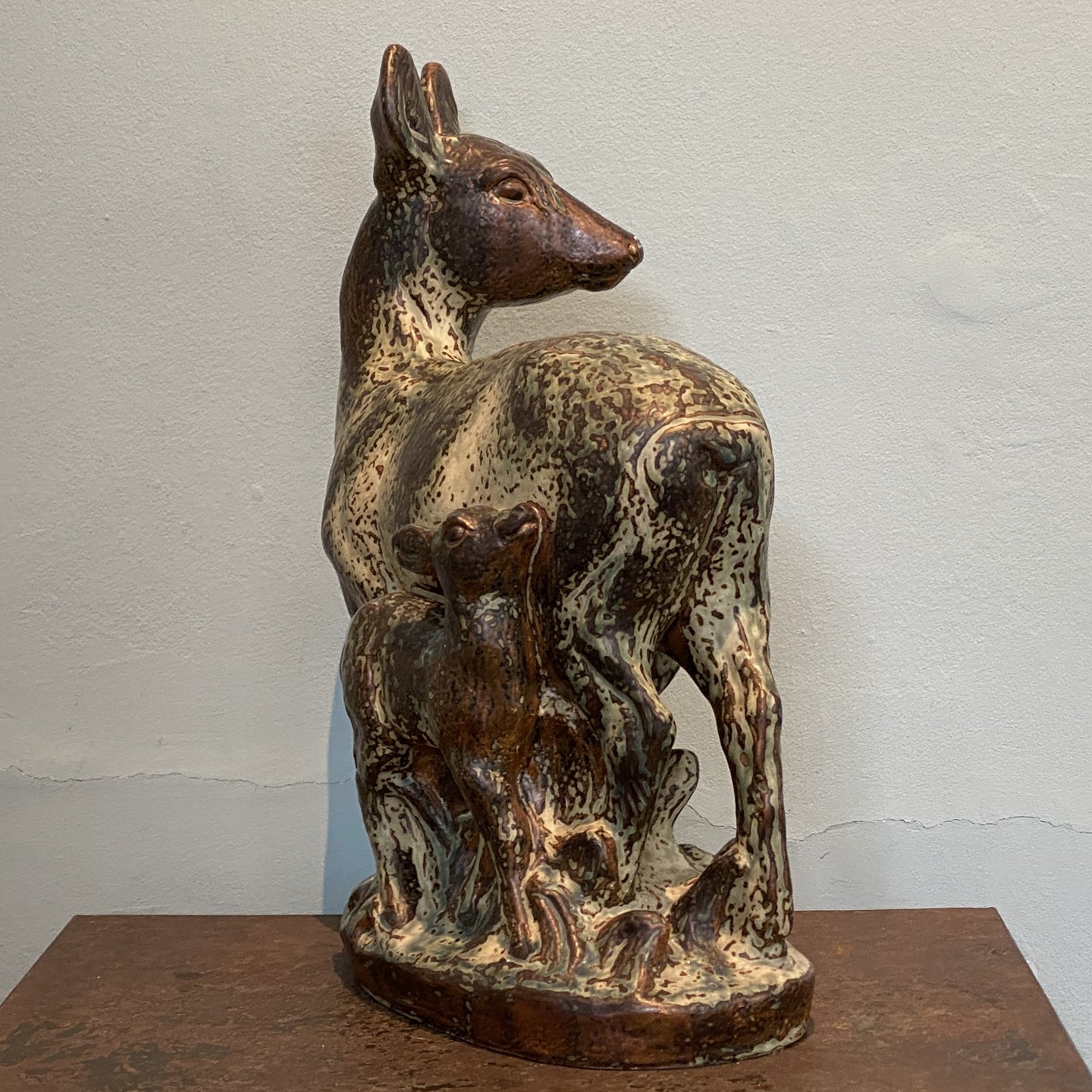 Knud Kuhn for Royal CopenhagenStentøjsfigur af dådyr med rålam.
