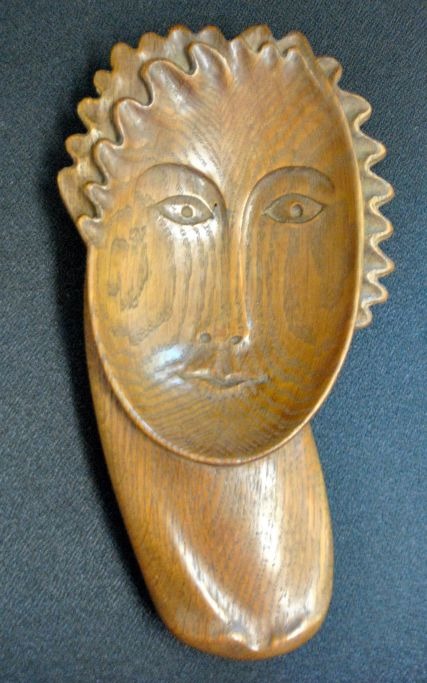 Gibsvad, Knud (1889 - ) Danmark: Kvinde ansigt. Udskåret egetræ. Signeret med monogram. H.: 28 cm.Virkelig sjælnden.