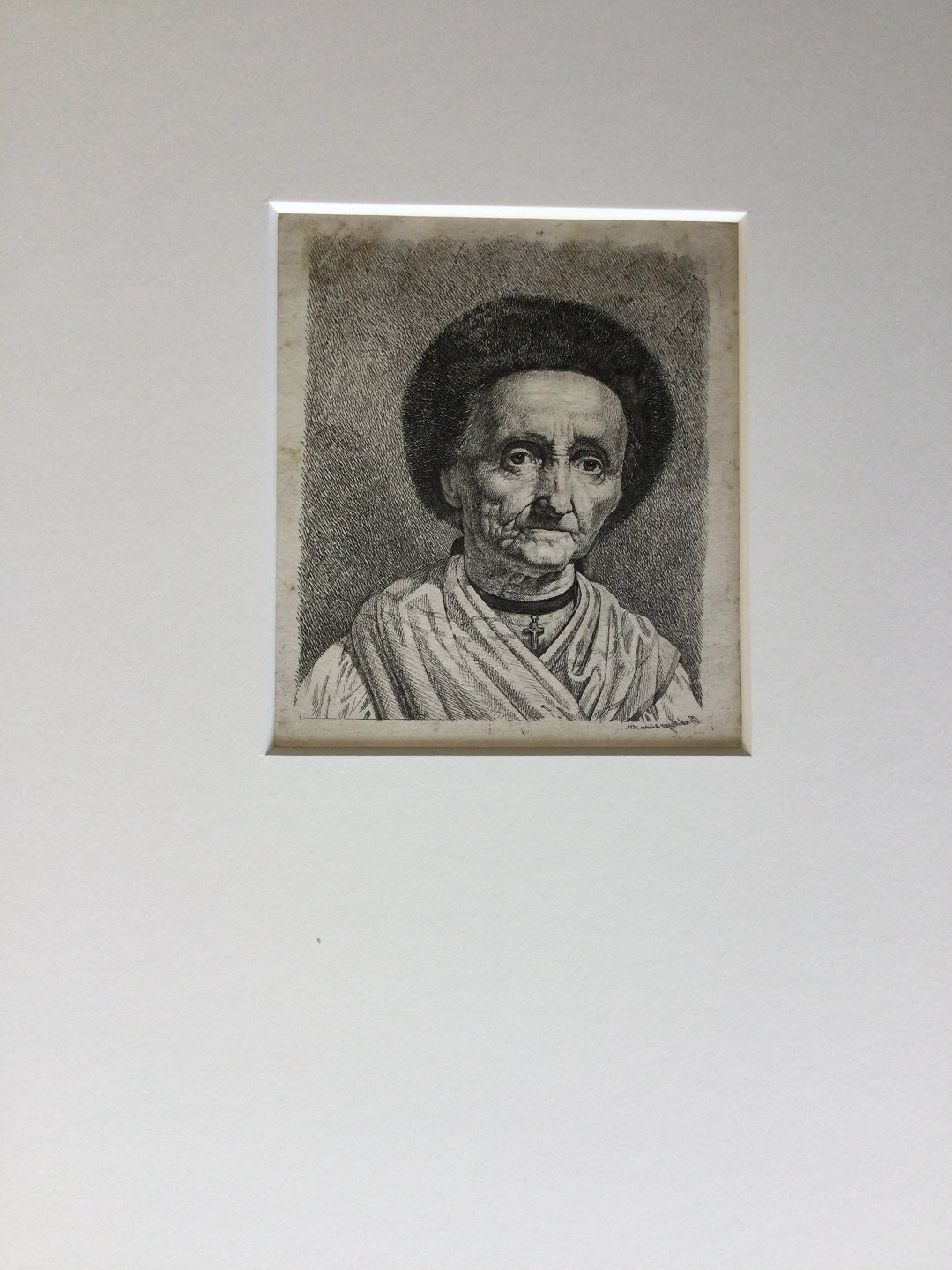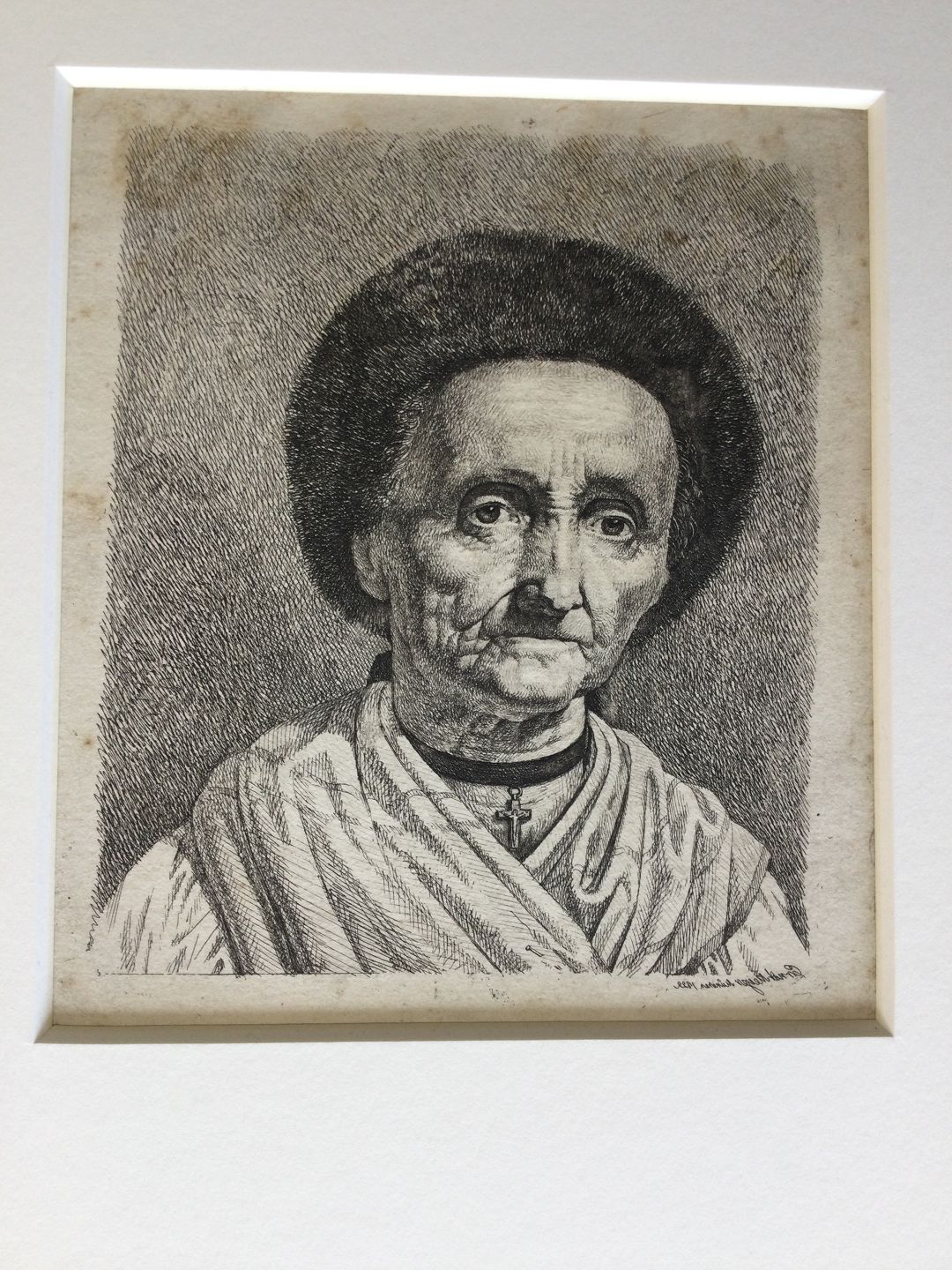 Ernst Meyer (1797-1861):Portræt af ældre tyrolerinde med kors om halsen, München 1822.