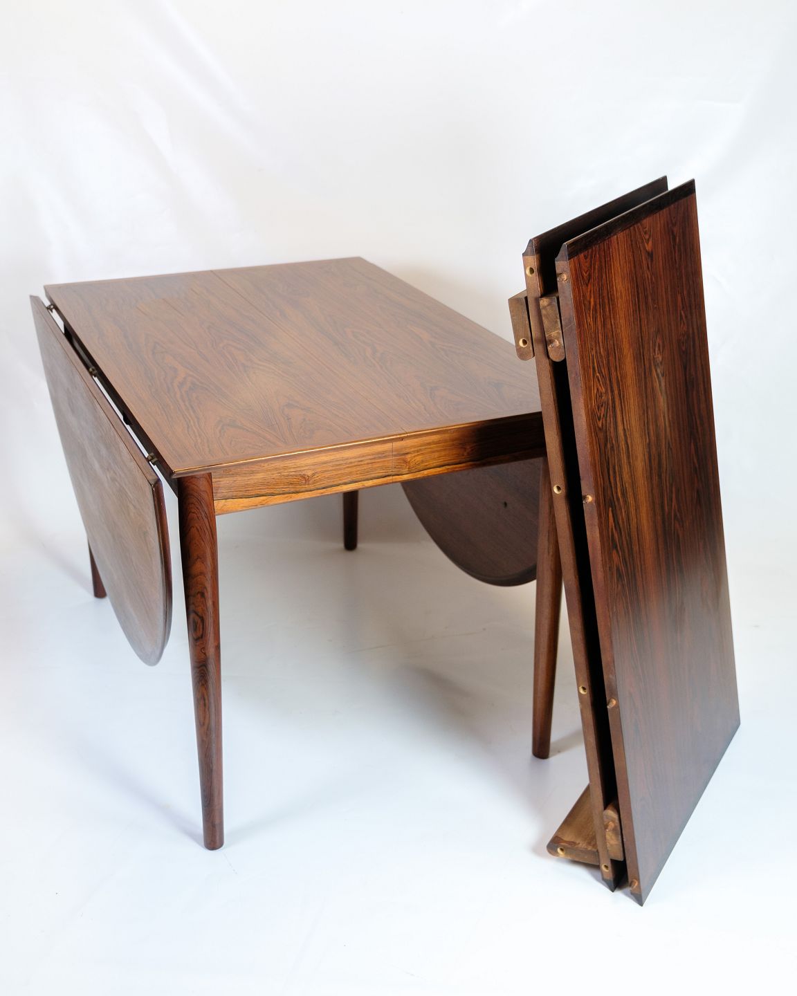 Dining table with flaps and pull-out in rosewood, designed by Arne Vodder, circa 1960s. Danish design with 2 extension leaves.Material: Rosewood