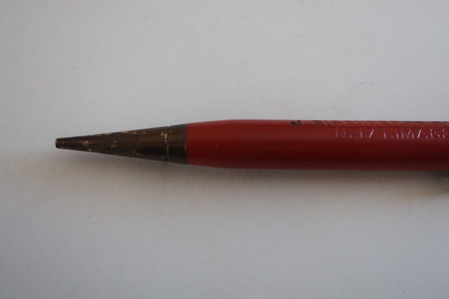 Gammel stiftblyantMed reklametryk: "J. Eisenbergs Skræderi"