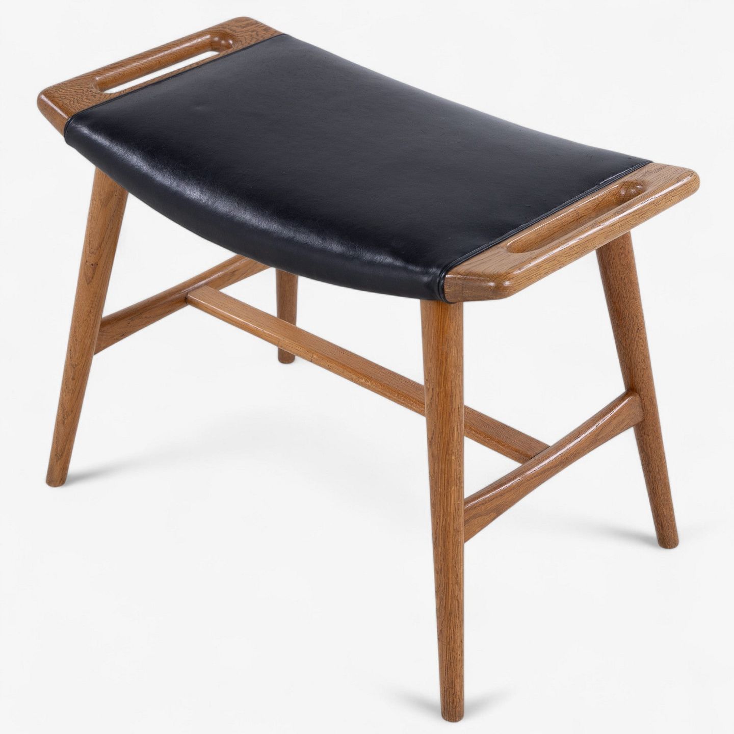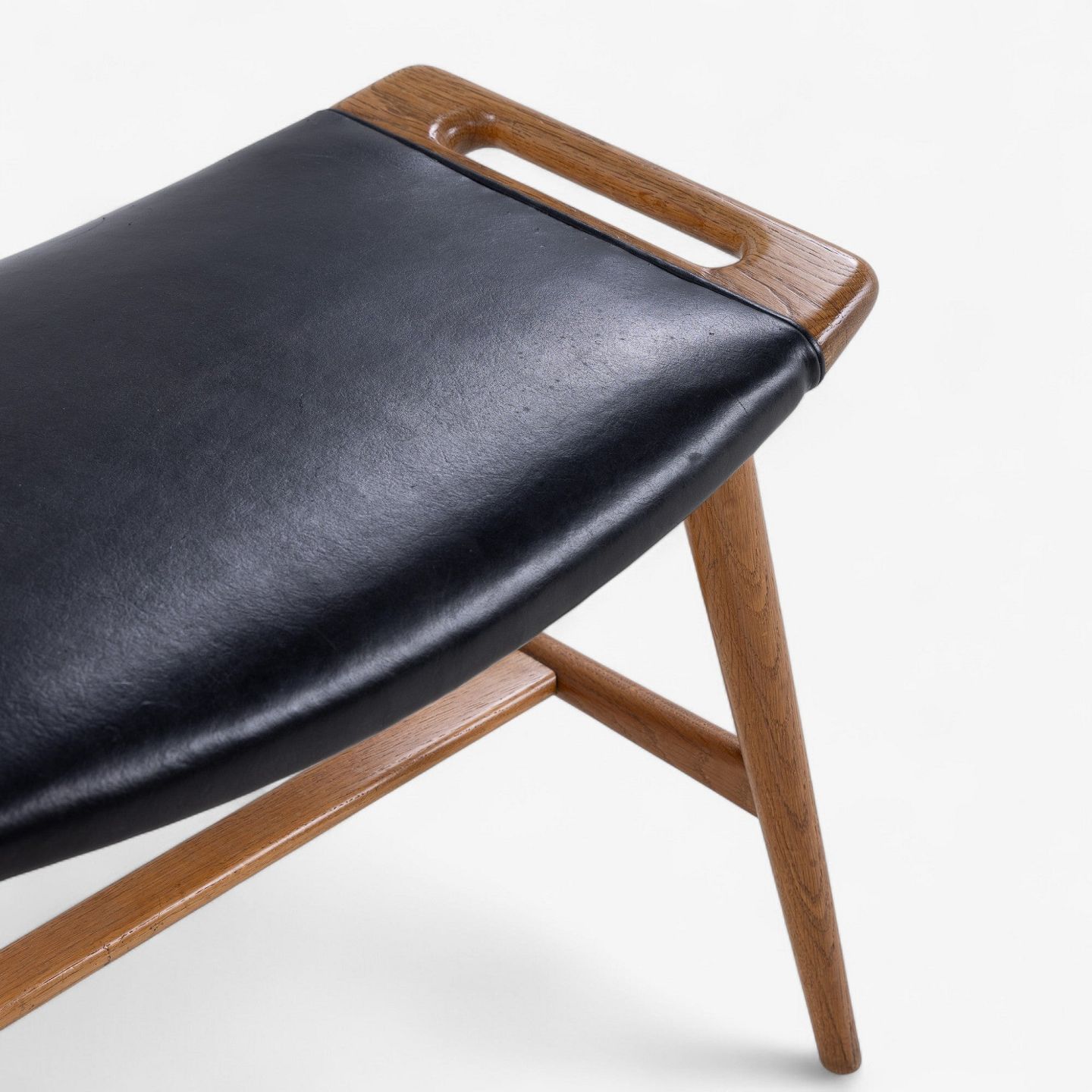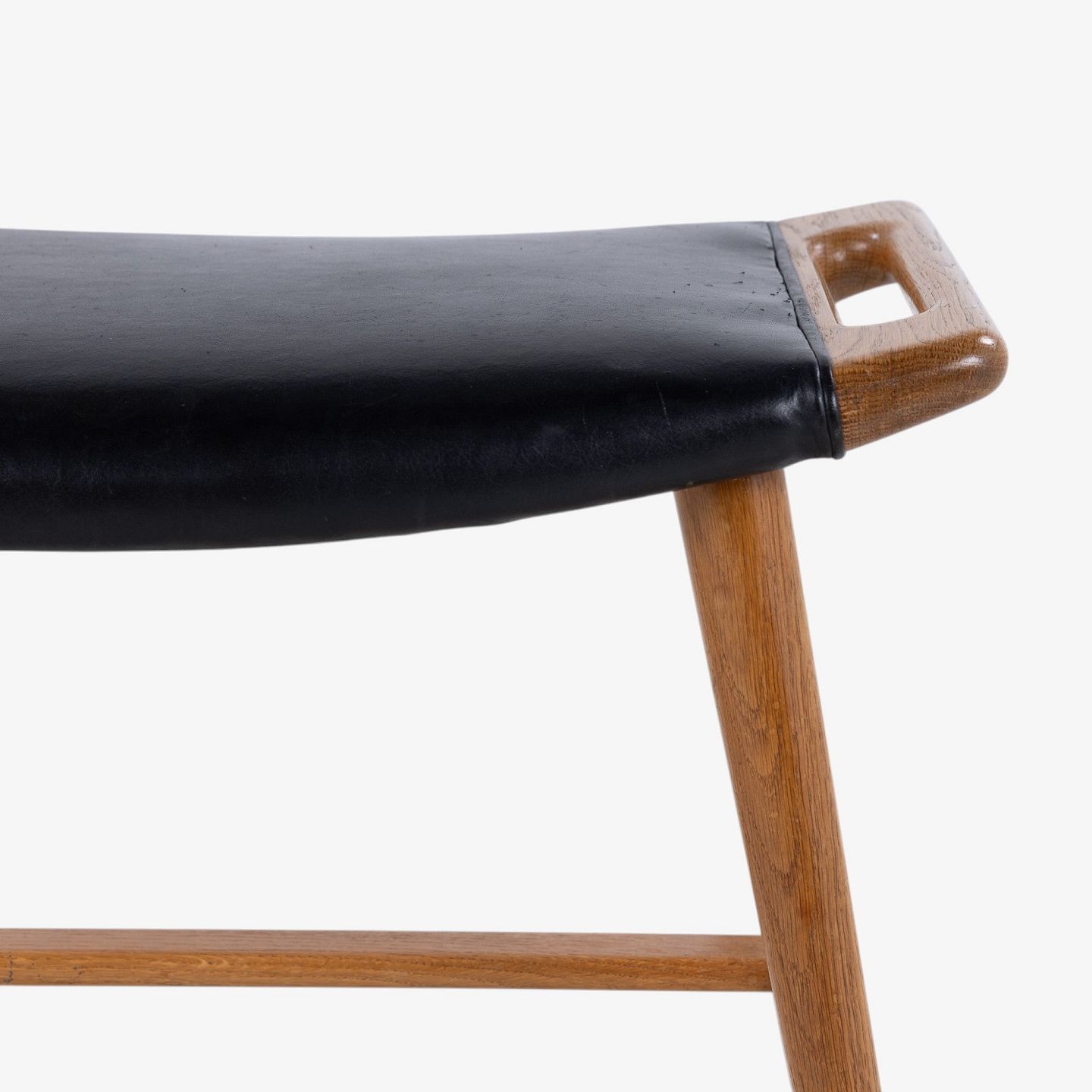 AP 30 - Klaverskammel i eg med sæde i patineret sort læder.