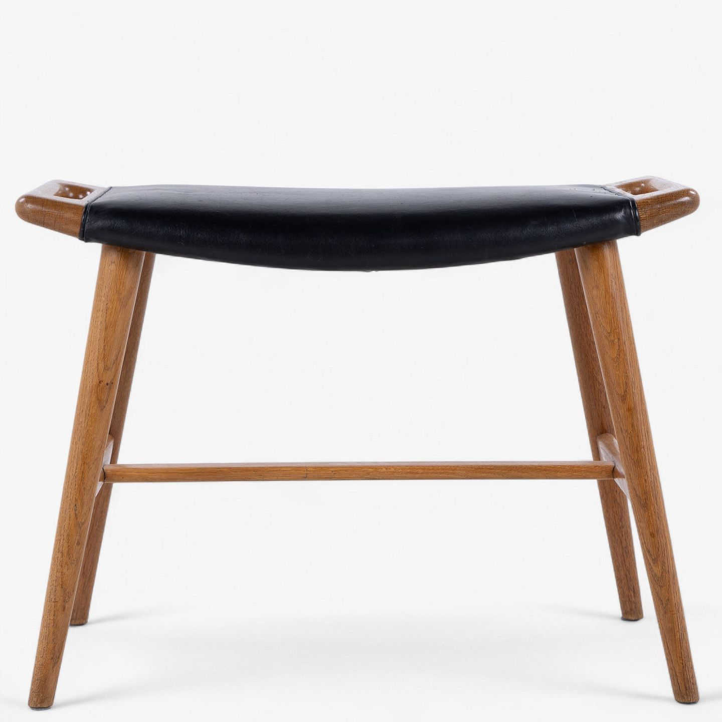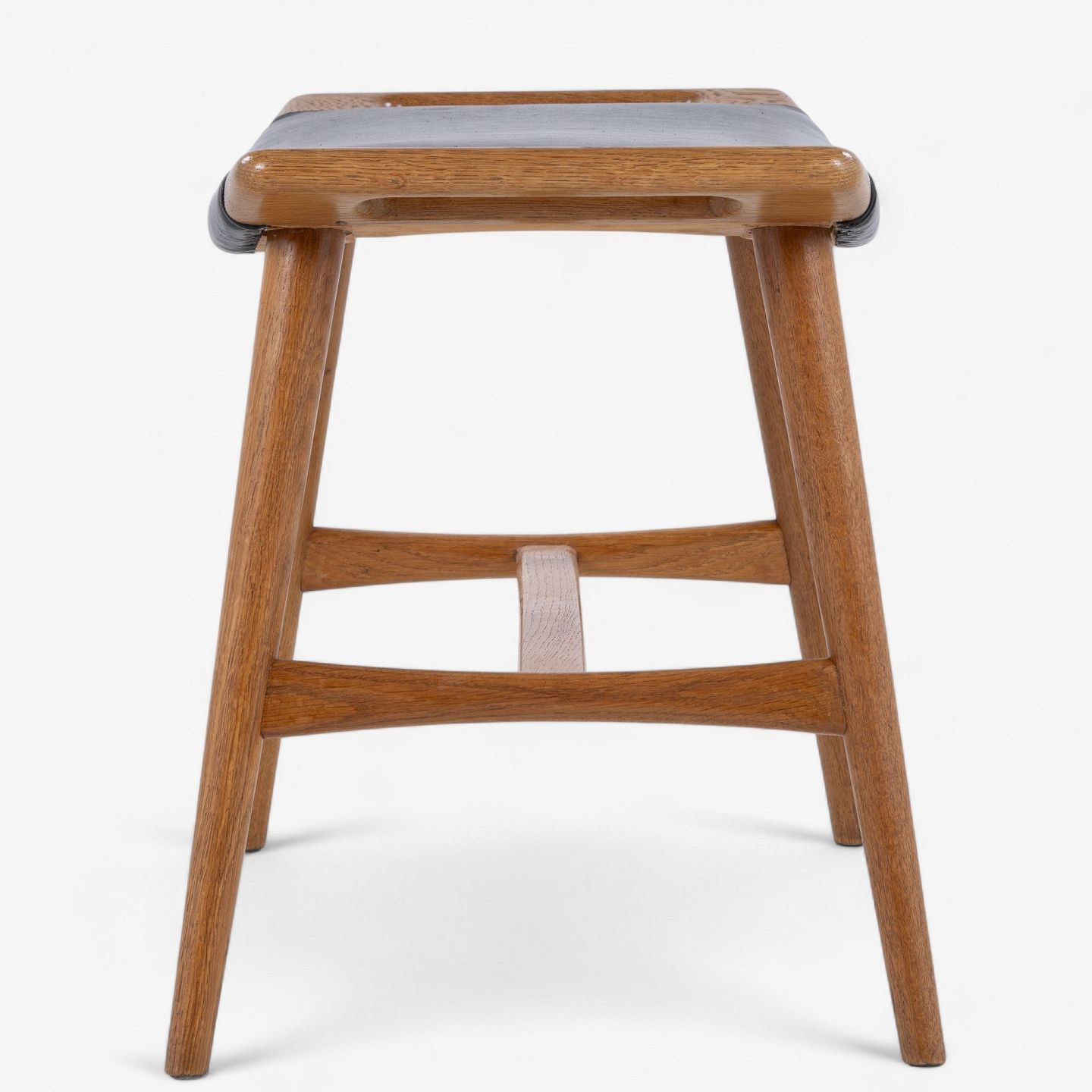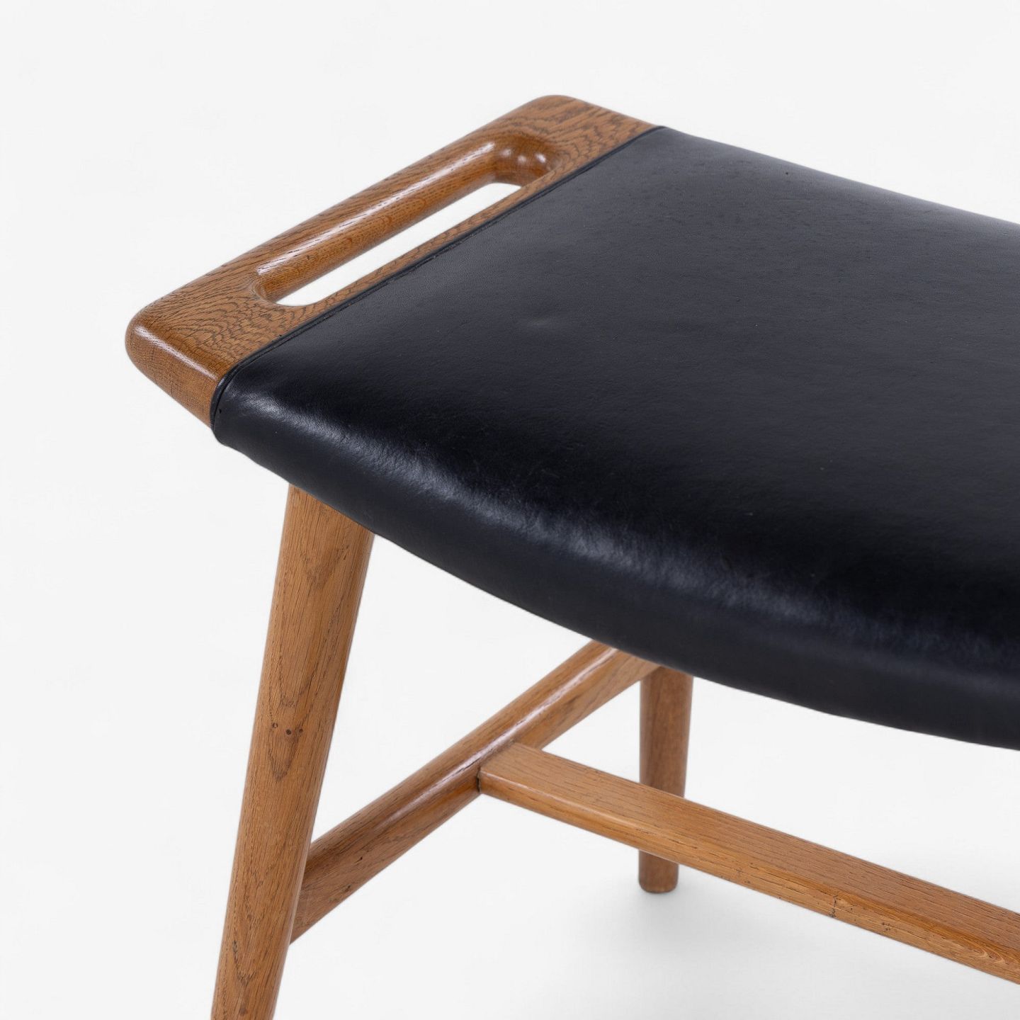AP 30 - Klaverskammel i eg med sæde i patineret sort læder.