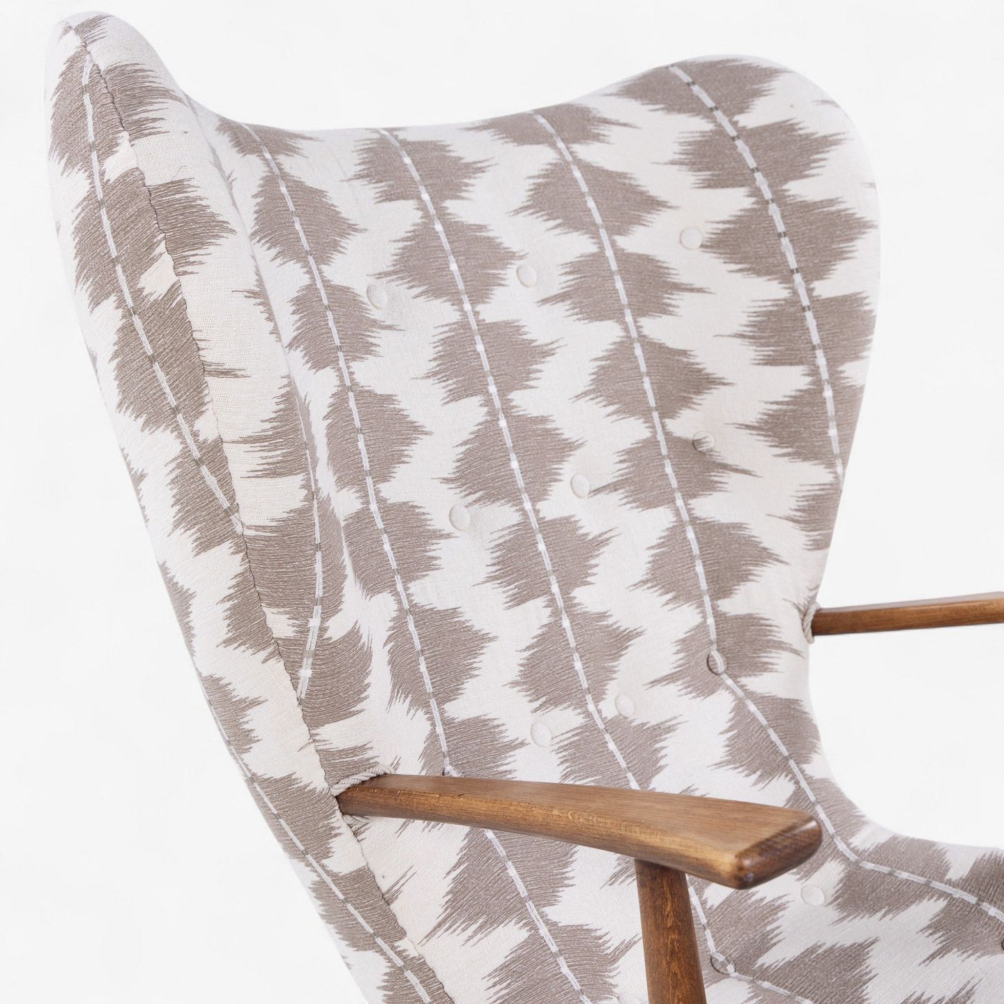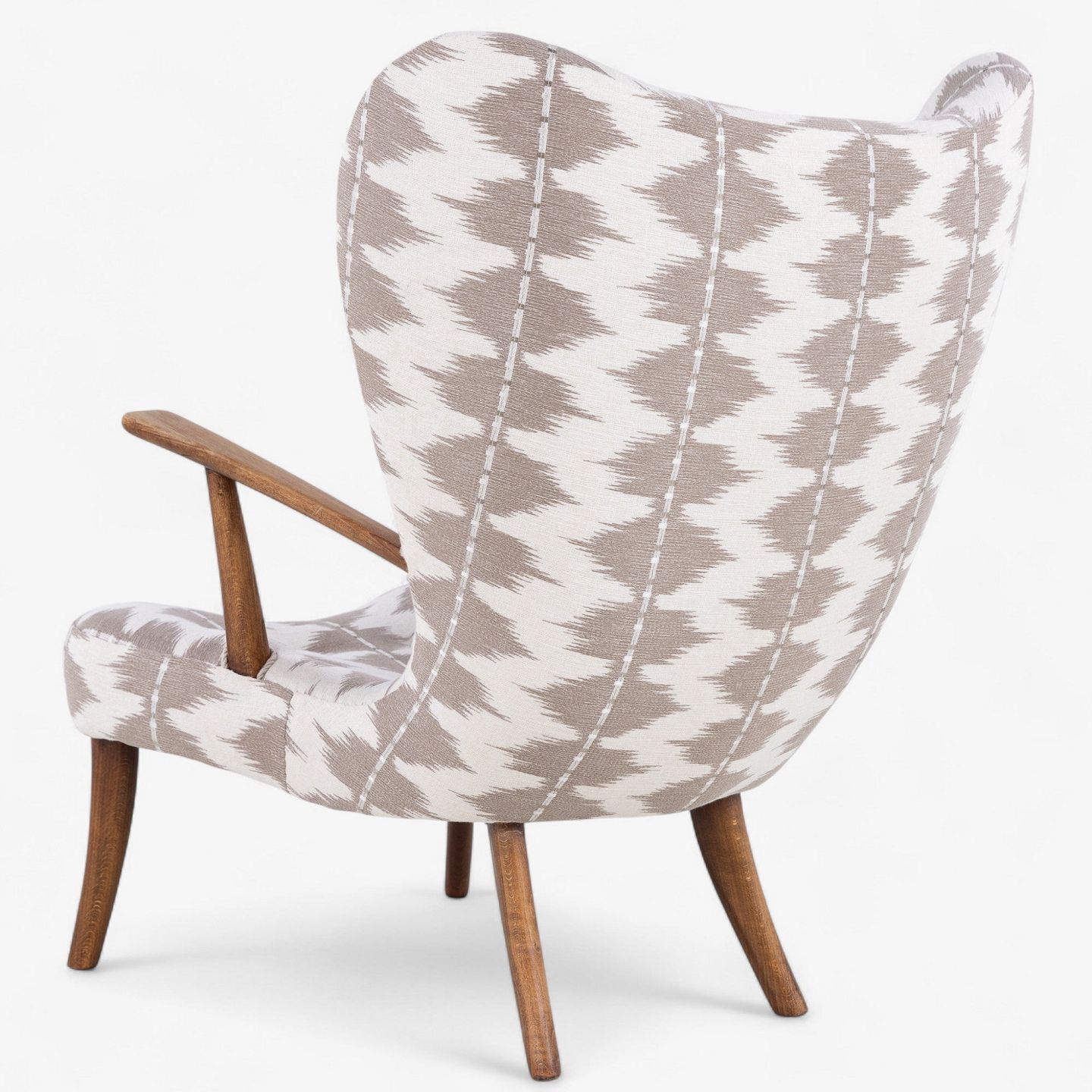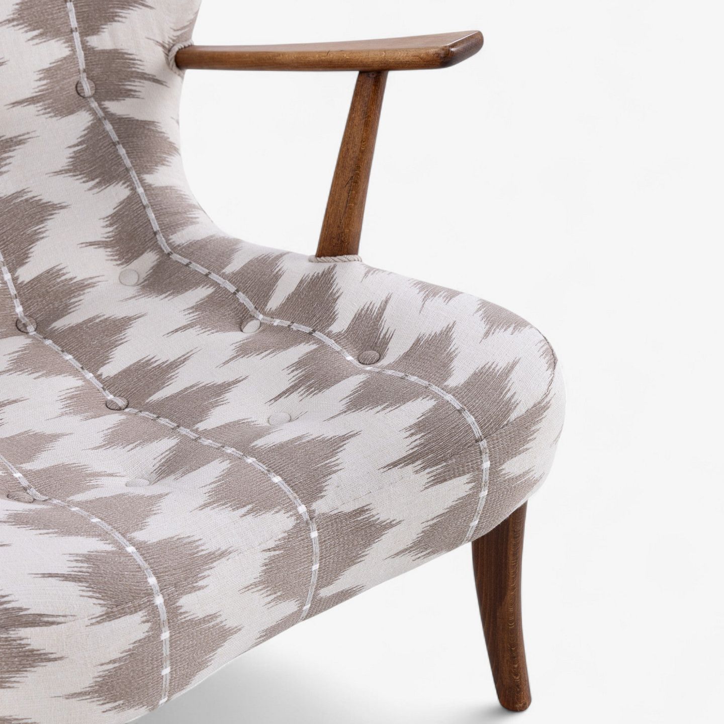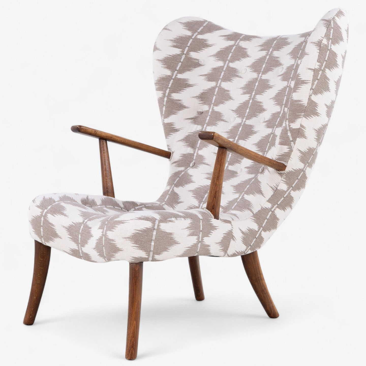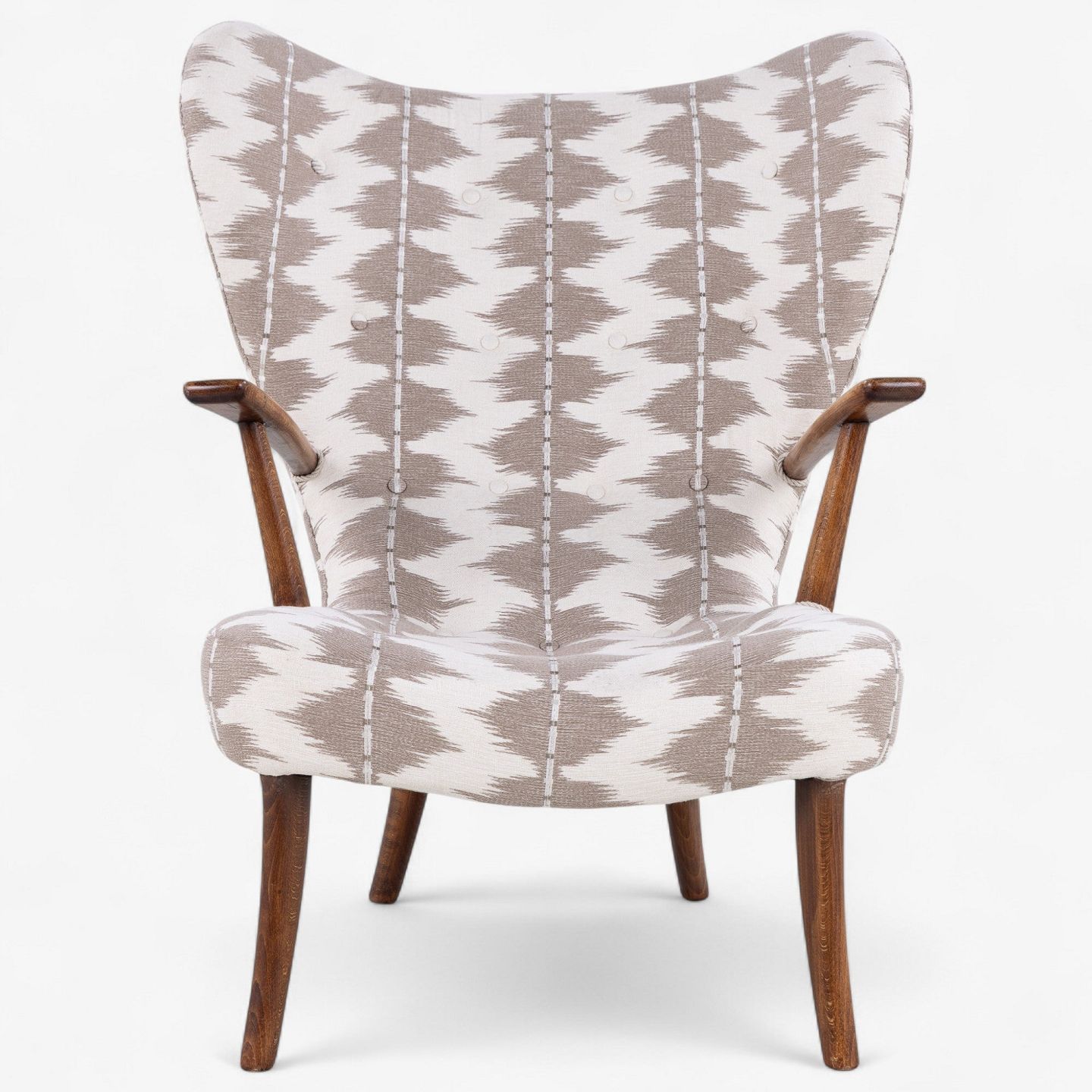 Nybetrukket 'Pragh'-lænestol i 'Myrthus'-tekstil (farve: Taupe).