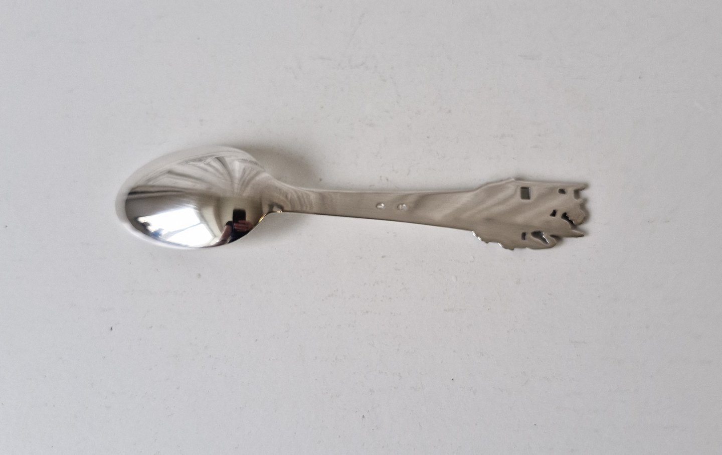 H.C.Andersen barneske i sølv - "Spinderokken"Stemplet: HS - 830s