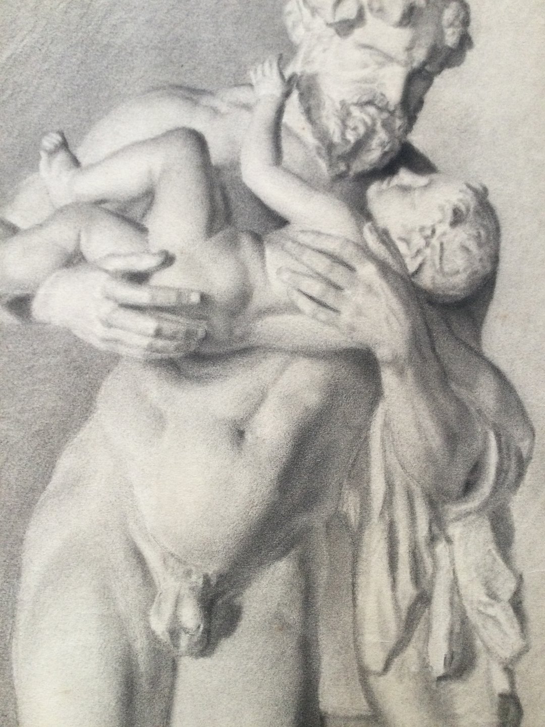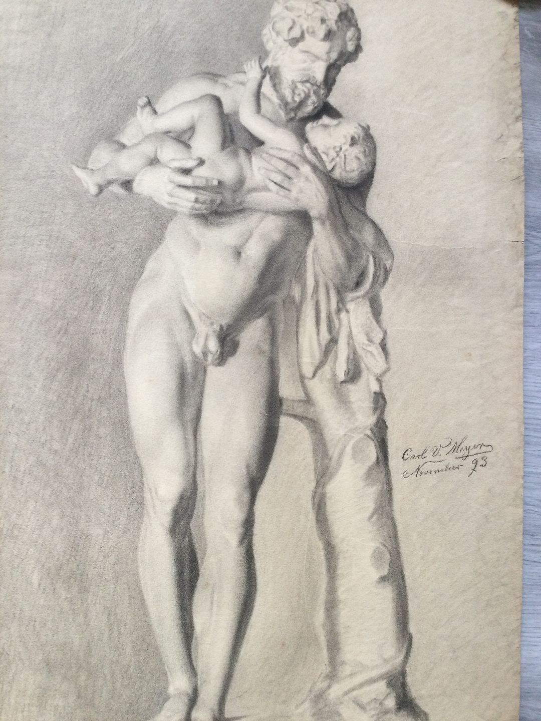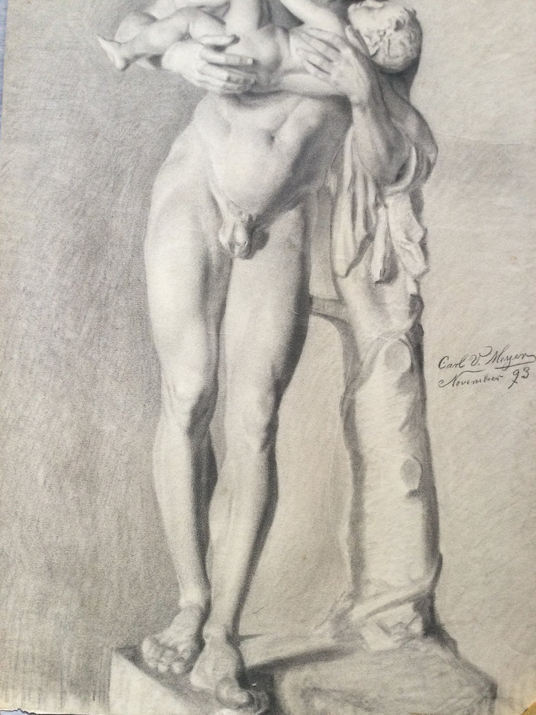 Carl V. Meyer (1870-1938):Nøgen mand med barn - Marmorskulptur - Silenus med Dionysus 1893.