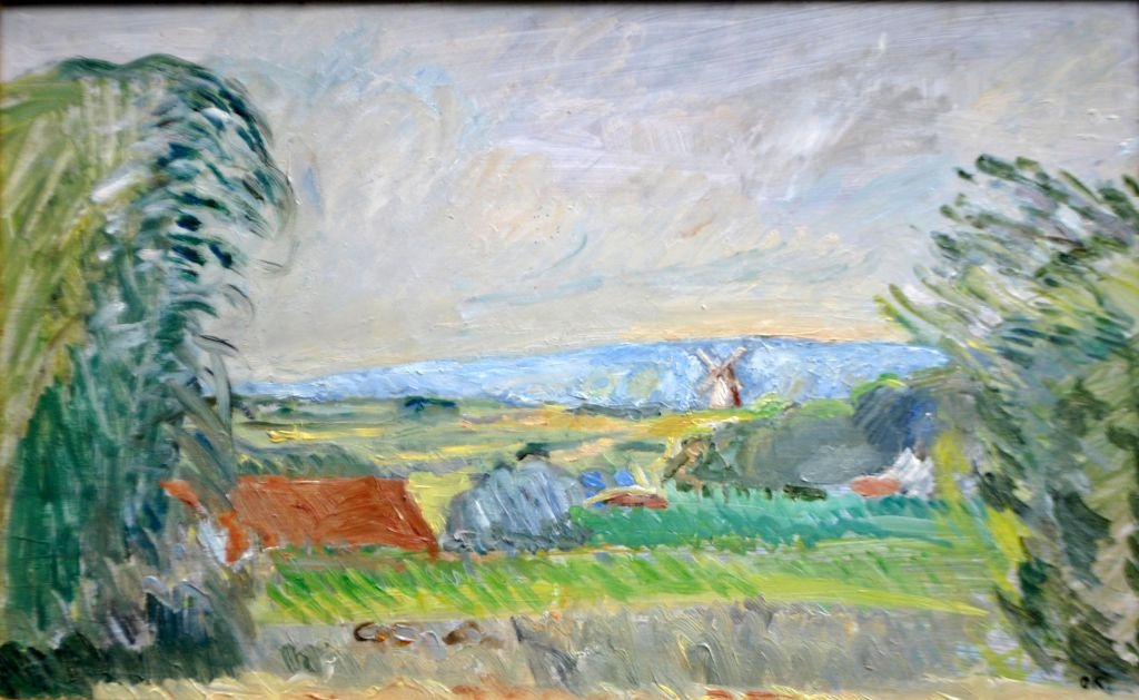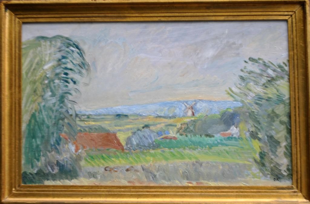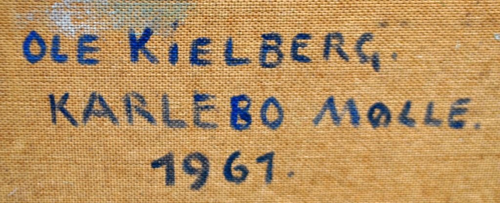 Kielberg, Ole (1911 - 1985) Danmark: Karlebo Mølle, 1961. Olie på massonit. Signeret: OK. På bagside signeret: Ole Kielberg Karlebo Mølle 1961. 38 x 60 cm.Indrammet: 45,5 x 68,5 cm.