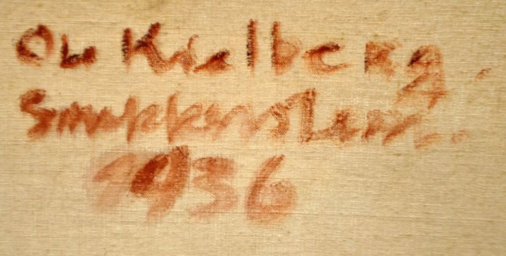 Kielberg, Ole (1911 - 1985) Danmark: Snekkersten, 1936. Olie på lærred. Signeret bagpå: Ole Kielberg Snekkersten 1936. H: 71 cm. B: 80 cm.Indrammet: H: 74,5 cm. B: 85 cm.