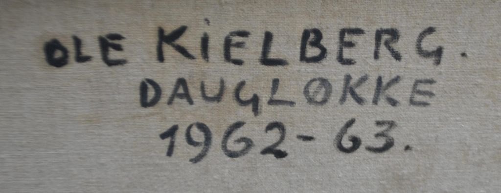 Kielberg, Ole (1911 - 1985) Danmark: Majlandskab - Daugløkke, 1962-63. Olie på lærred. Signeret: OK. Signeret bagpå: Ole Kielberg Daugløkke 1962-3. H: 46 cm. B: 55 cm.Indrammet: H: 52,5 cm. B: 62 cm.