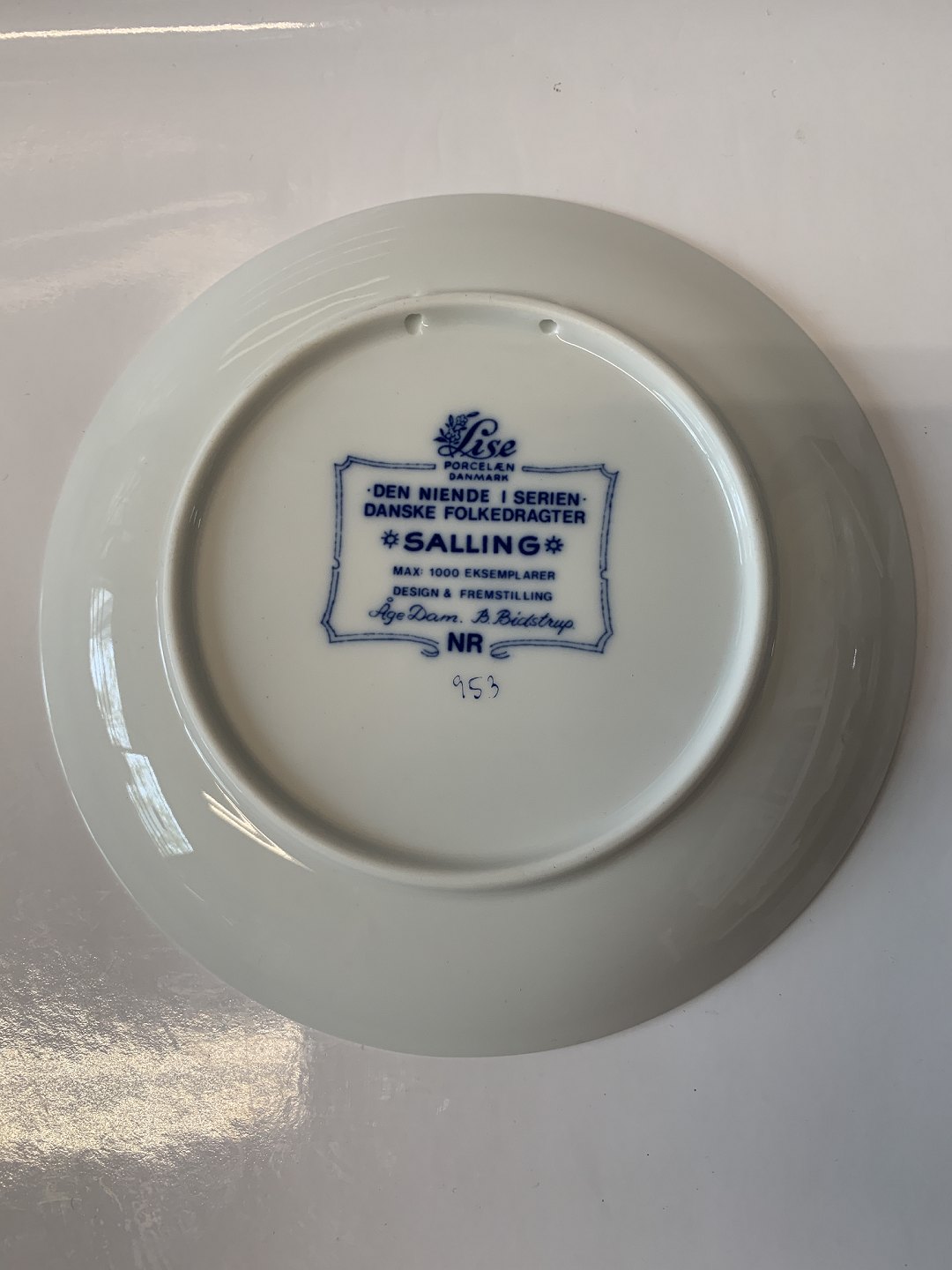 Platte Skive Salling, Danske Folkedragter.Dekorationsnummer 953.