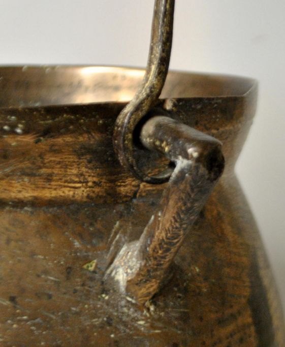 Three-legged pot in bronze, 17th/18th century. Northern Germany. With handle and three legs. Unmarked. H.: 20 cm. Height with handle: 30 cm. Dia.: 20.5 cm.Item number: 28217