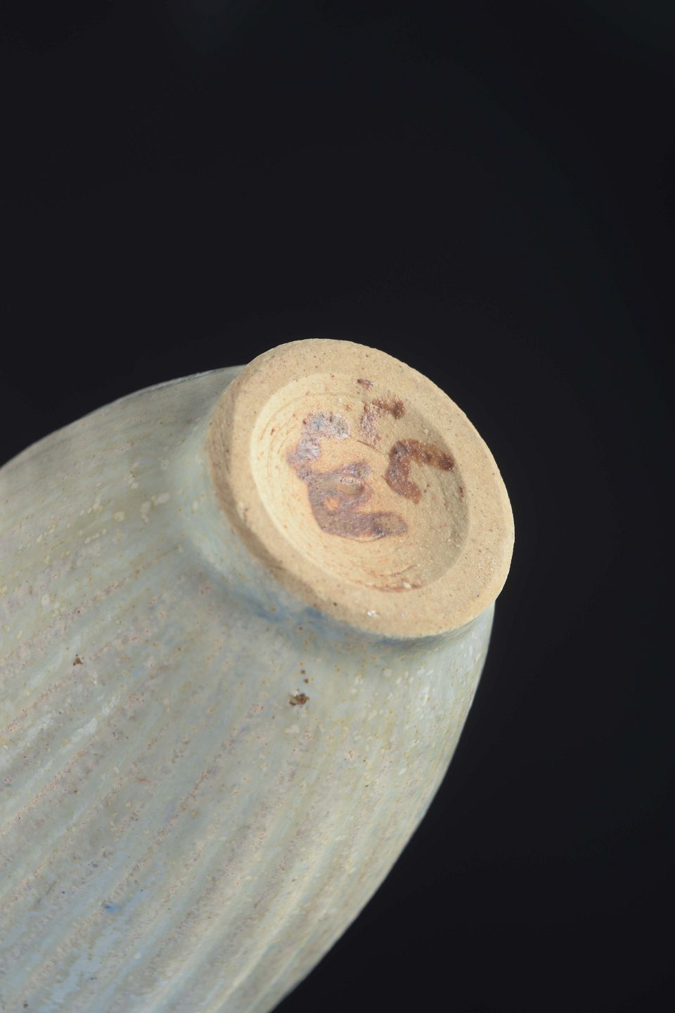 Cylindrisk riflet stentøjskrukke i grålig glasur, tilhørende låg i sølv stemplet C. Holm 830S, samt ske i sterling sølv stemplet Hans Hansen, Denmark Sterling.