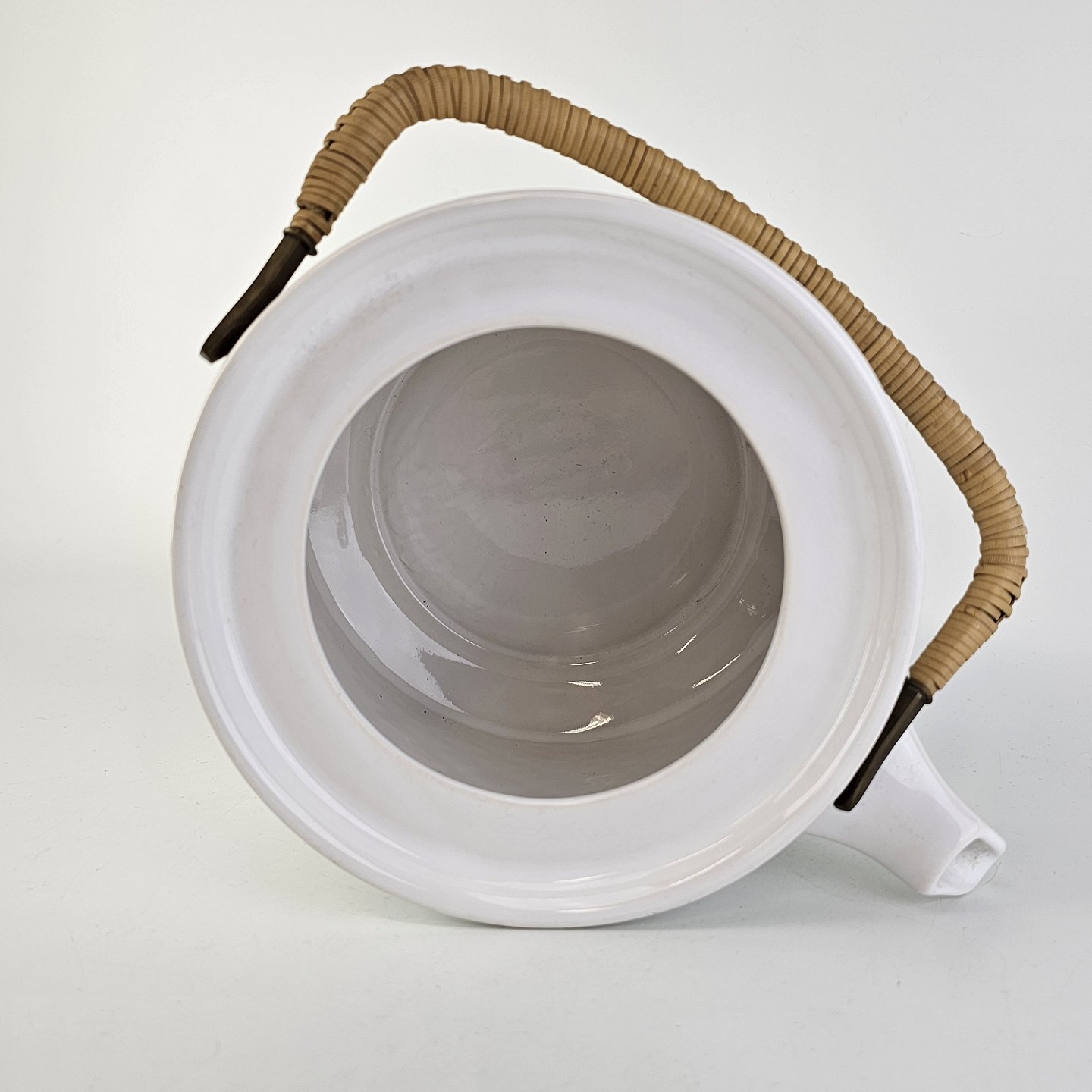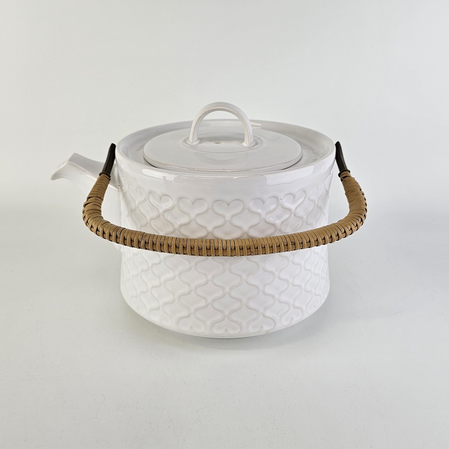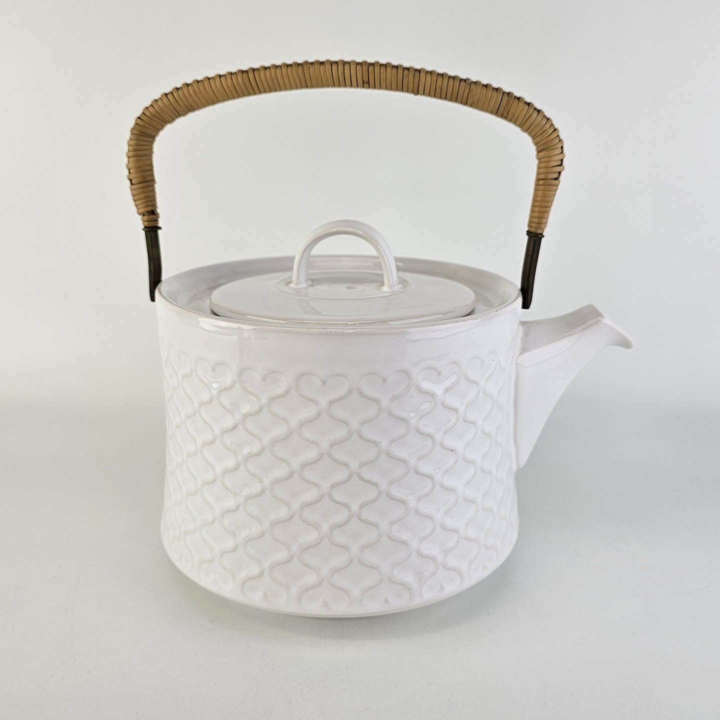 Tekande i stentøj med hank i messing omgivet af naturflet fra stellet Cordial Hvid PaletNr. 656