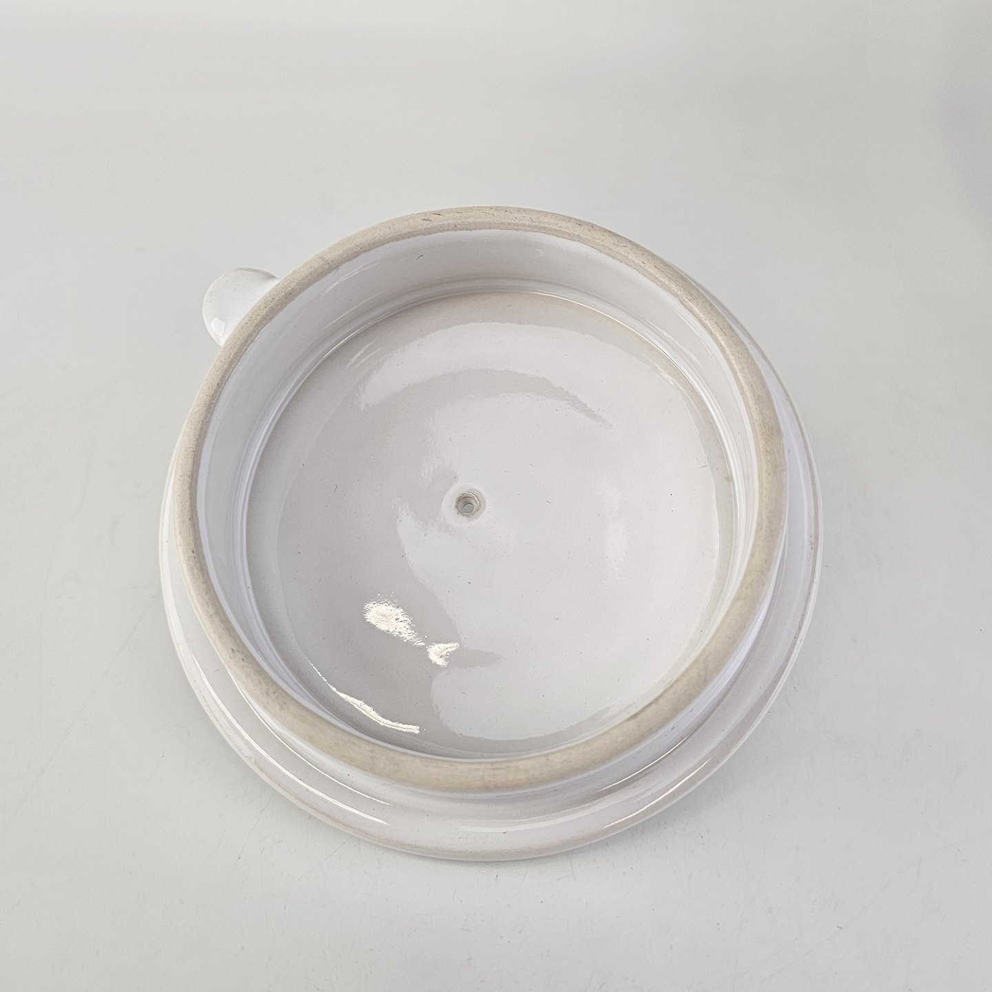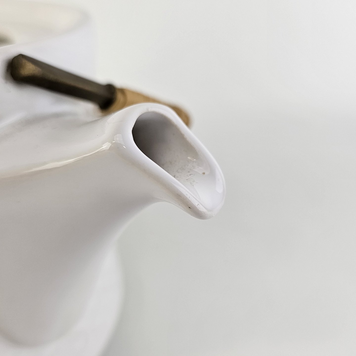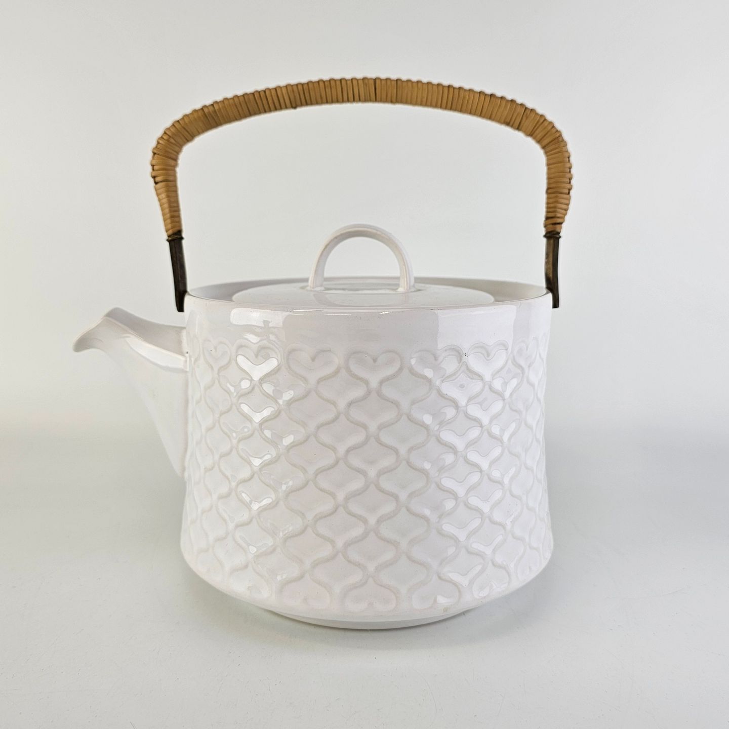Tekande i stentøj med hank i messing omgivet af naturflet fra stellet Cordial Hvid PaletNr. 656