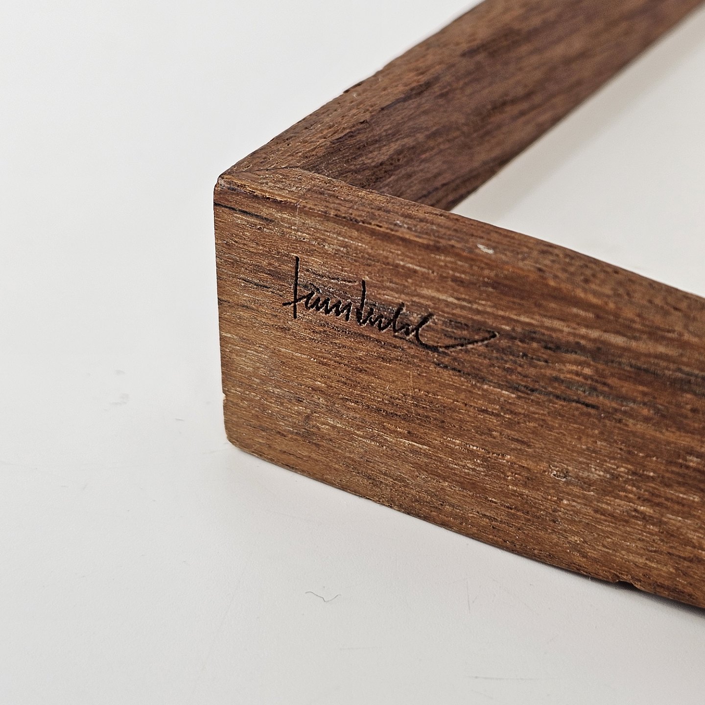 Vendbar bakke i teak tre og højglans laminat, sort på den ene side og hvid på den andenFormgiver Finn Juhl