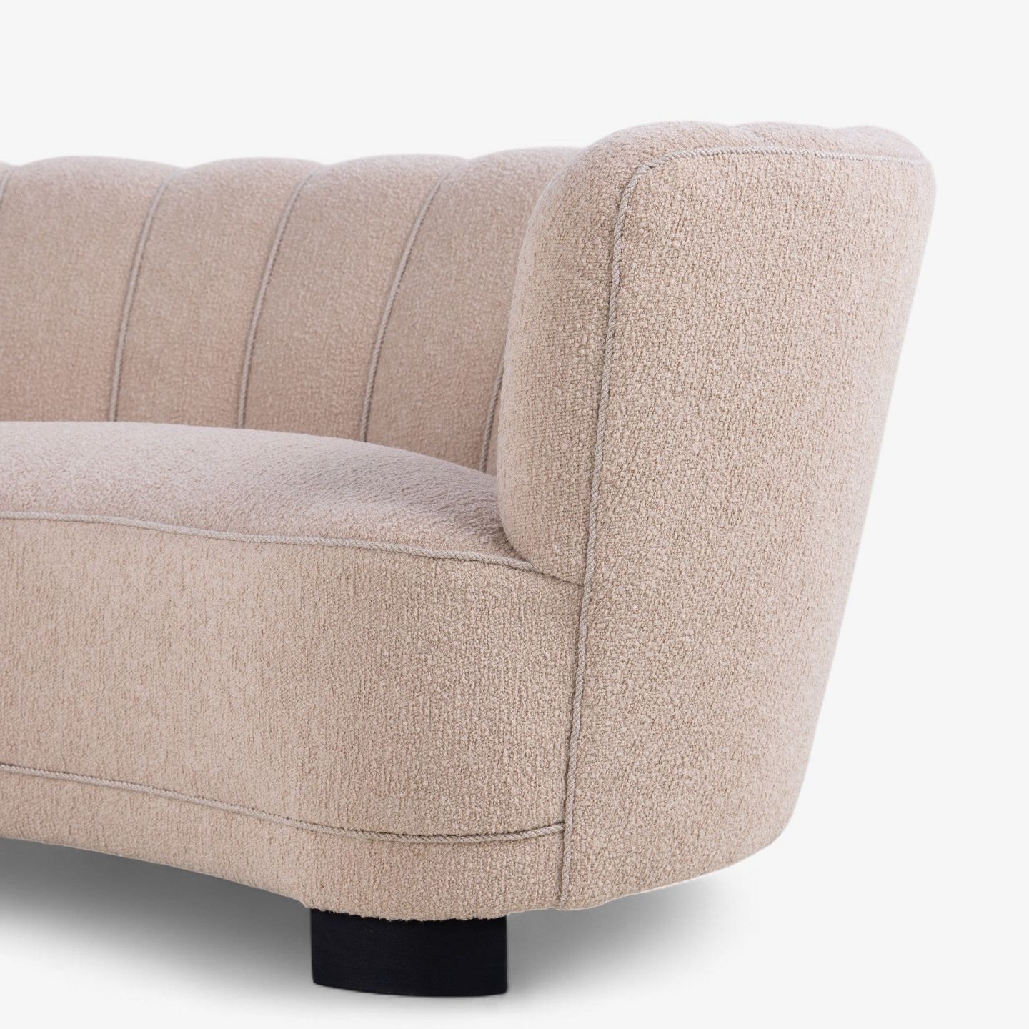 Newly upholstered 'Banana sofa' in 'Teddy' fabric (color: Nude).