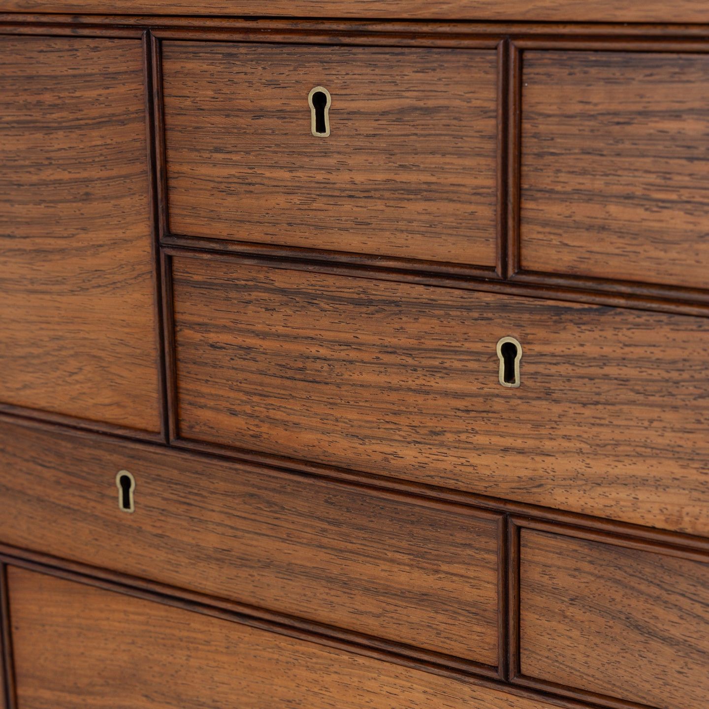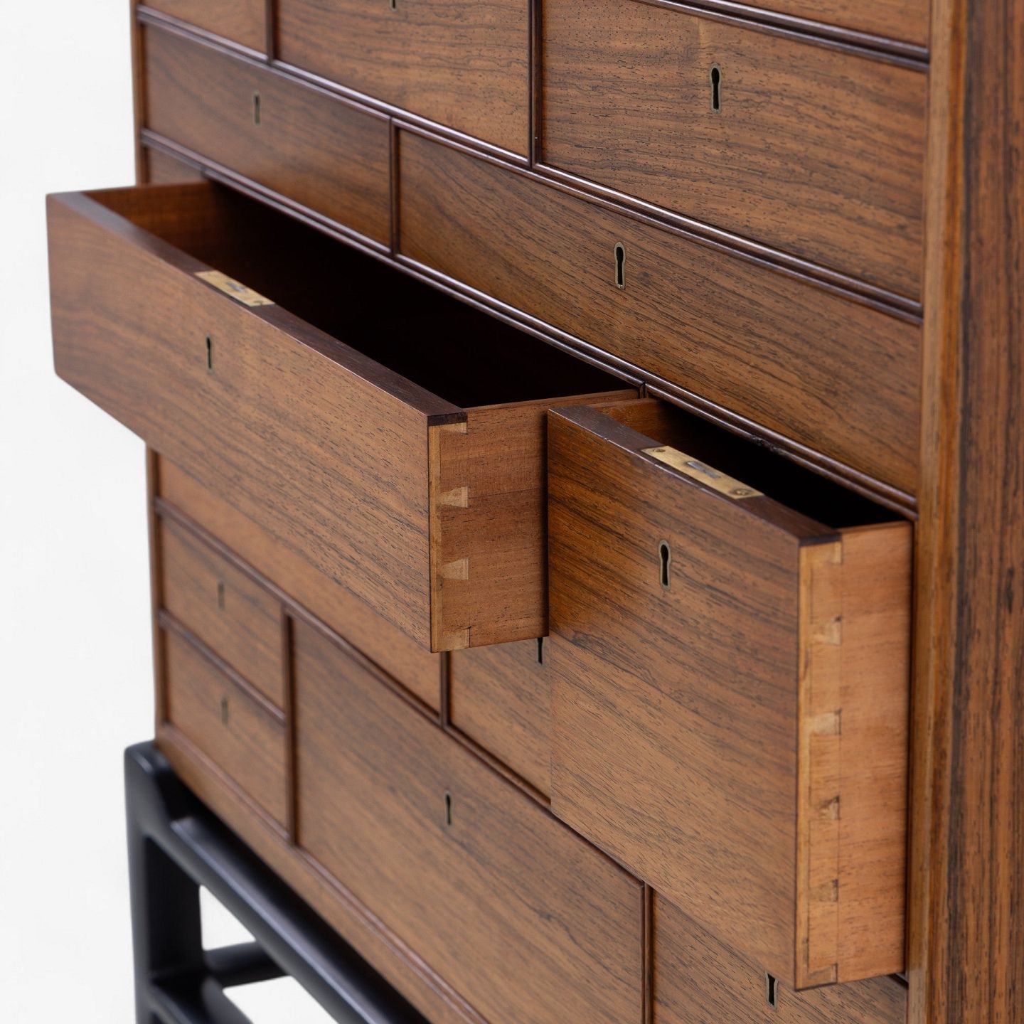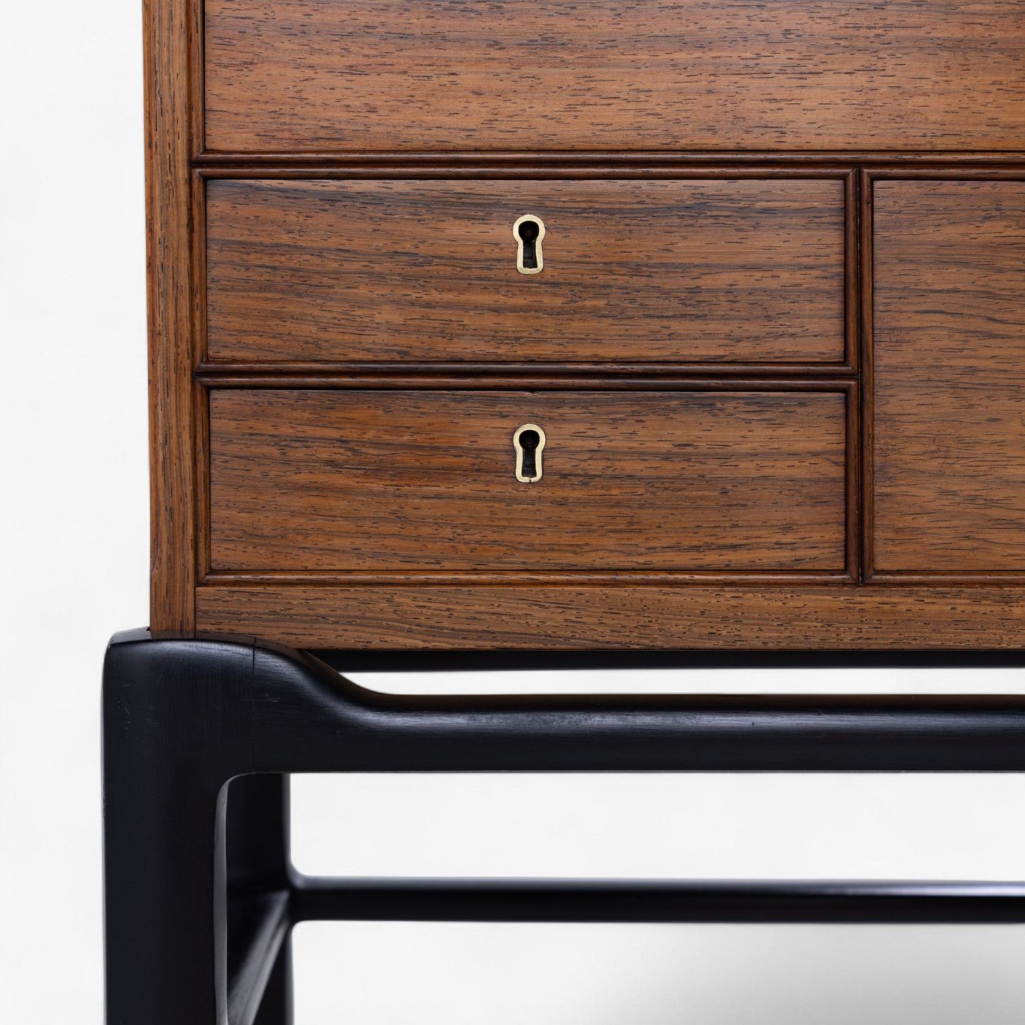 Sjældent skab i palisander med skuffer og sortlakeret stel med messingsko.
