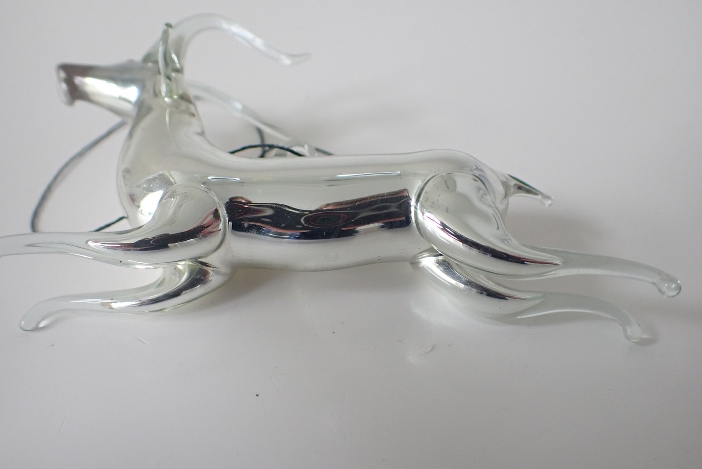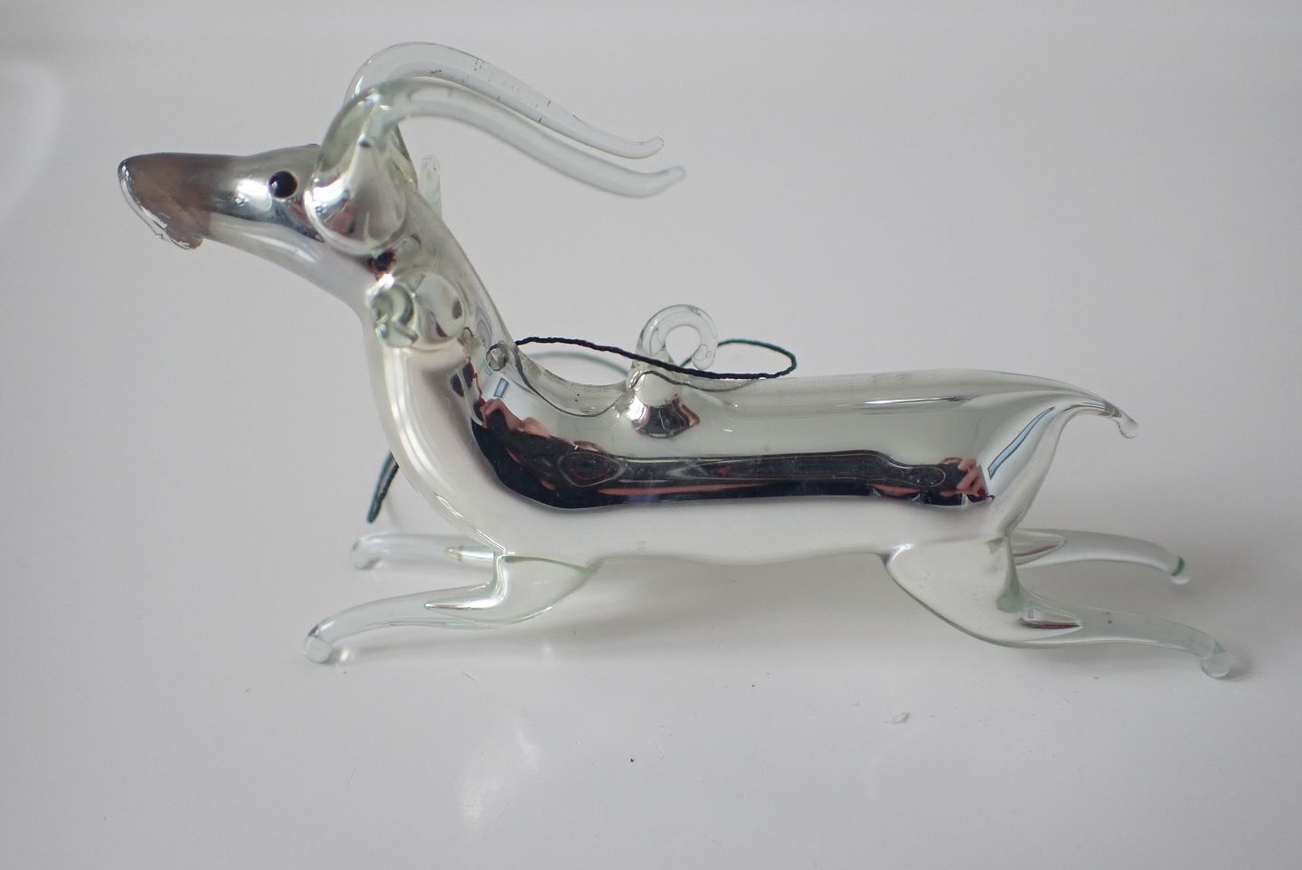 Glasjulepynt - sjælden glashjort, sølvfarvet. Med glasophæng. Leipzig tidlig 1900-tal. Højde. 5,2 cm. Længde: 9 cm. Hel og fin stand uden afslag. Udstiller