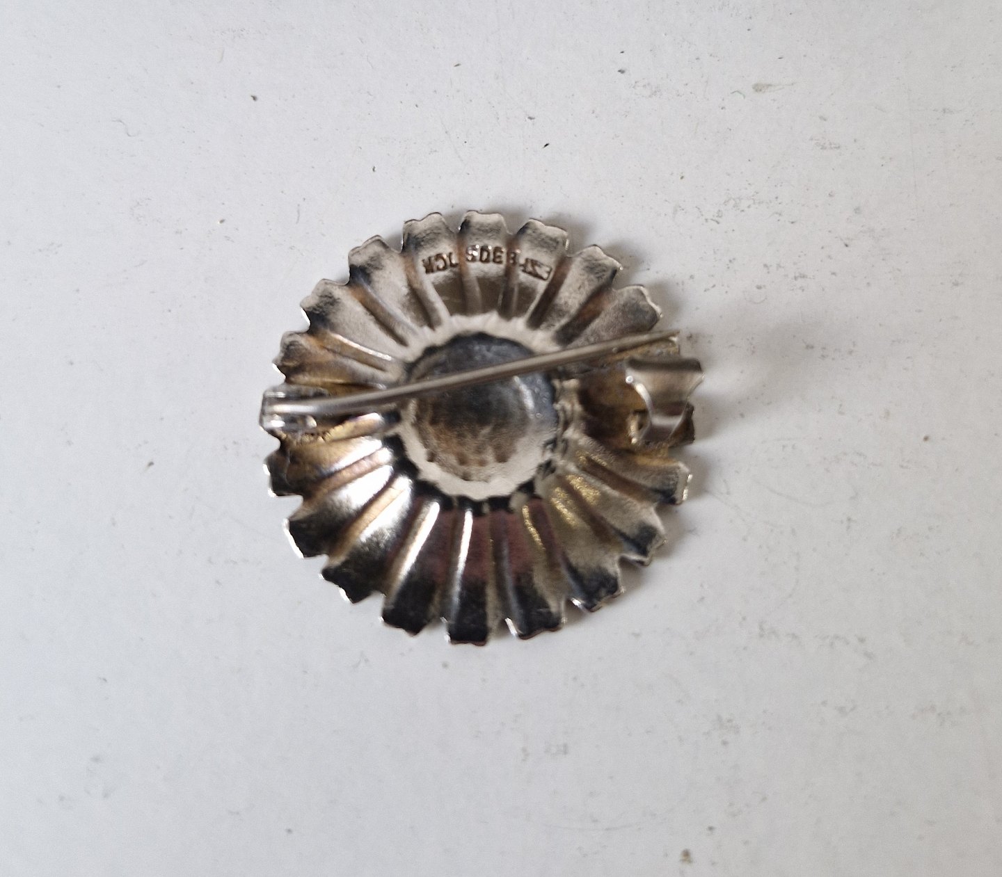 Margueritte broche i sølv og emaljeStemplet 830s samt utydeligt mester stempel