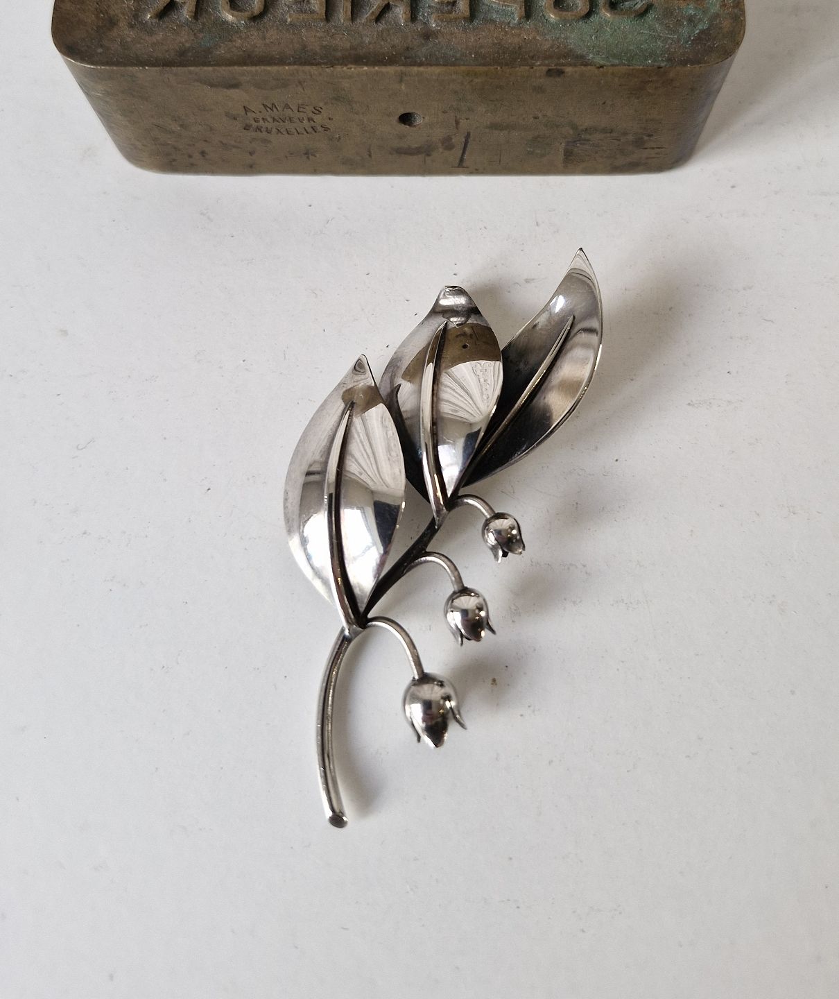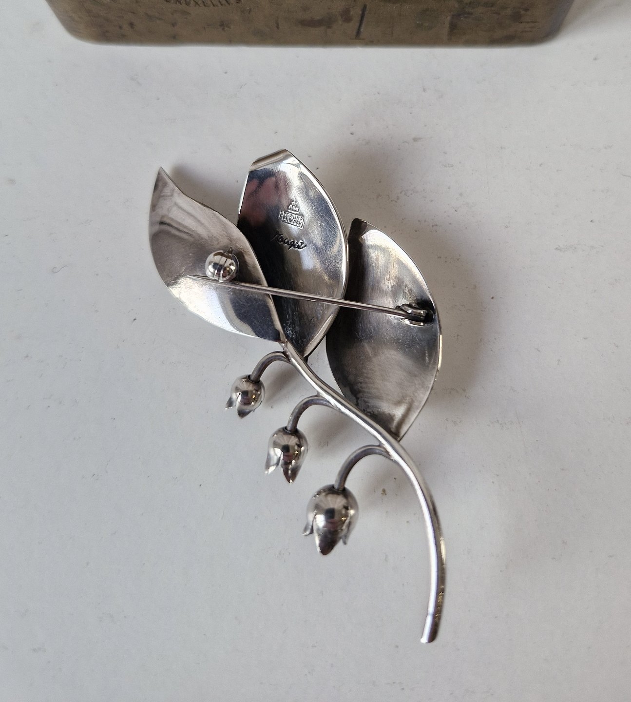 A. Michelsen sølvbroche i form af liljekonval, de tre små blomster er bevægelige.Stemplet: AM - Sterling - Denmark