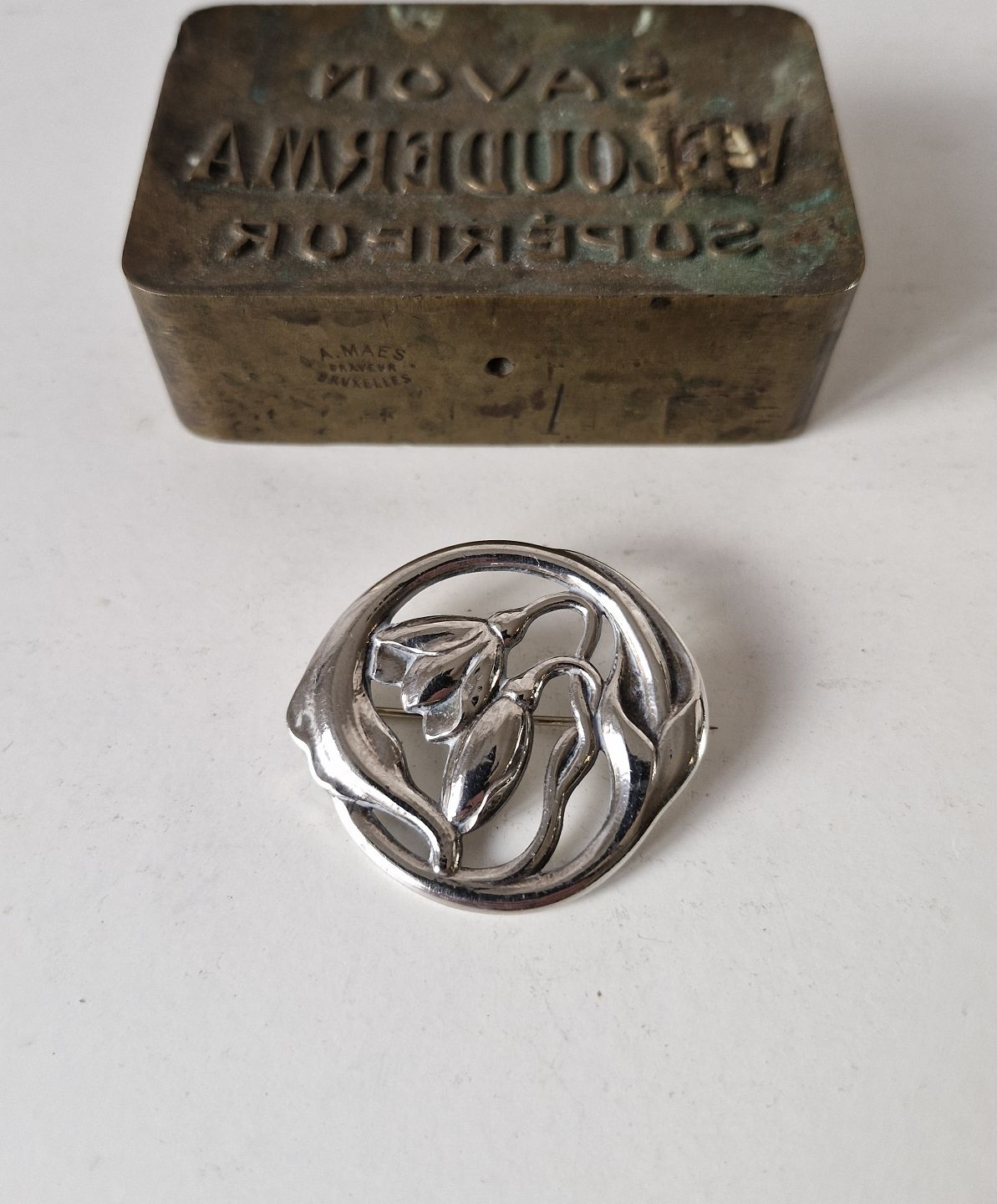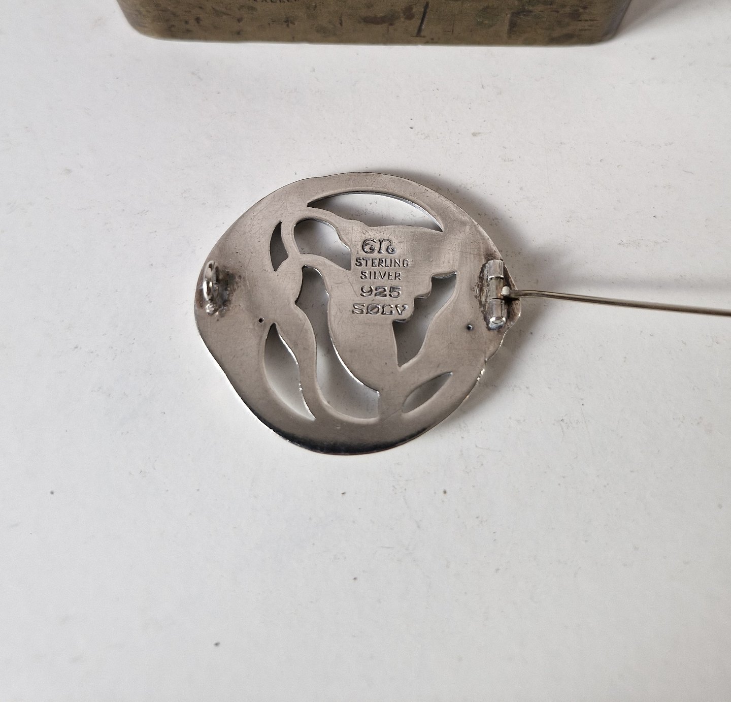 Evald Nielsen skønvirke broche i sølv dekoreret med vintergækkerStemplet: EN - Sterling - Silver - Sølv - 925
