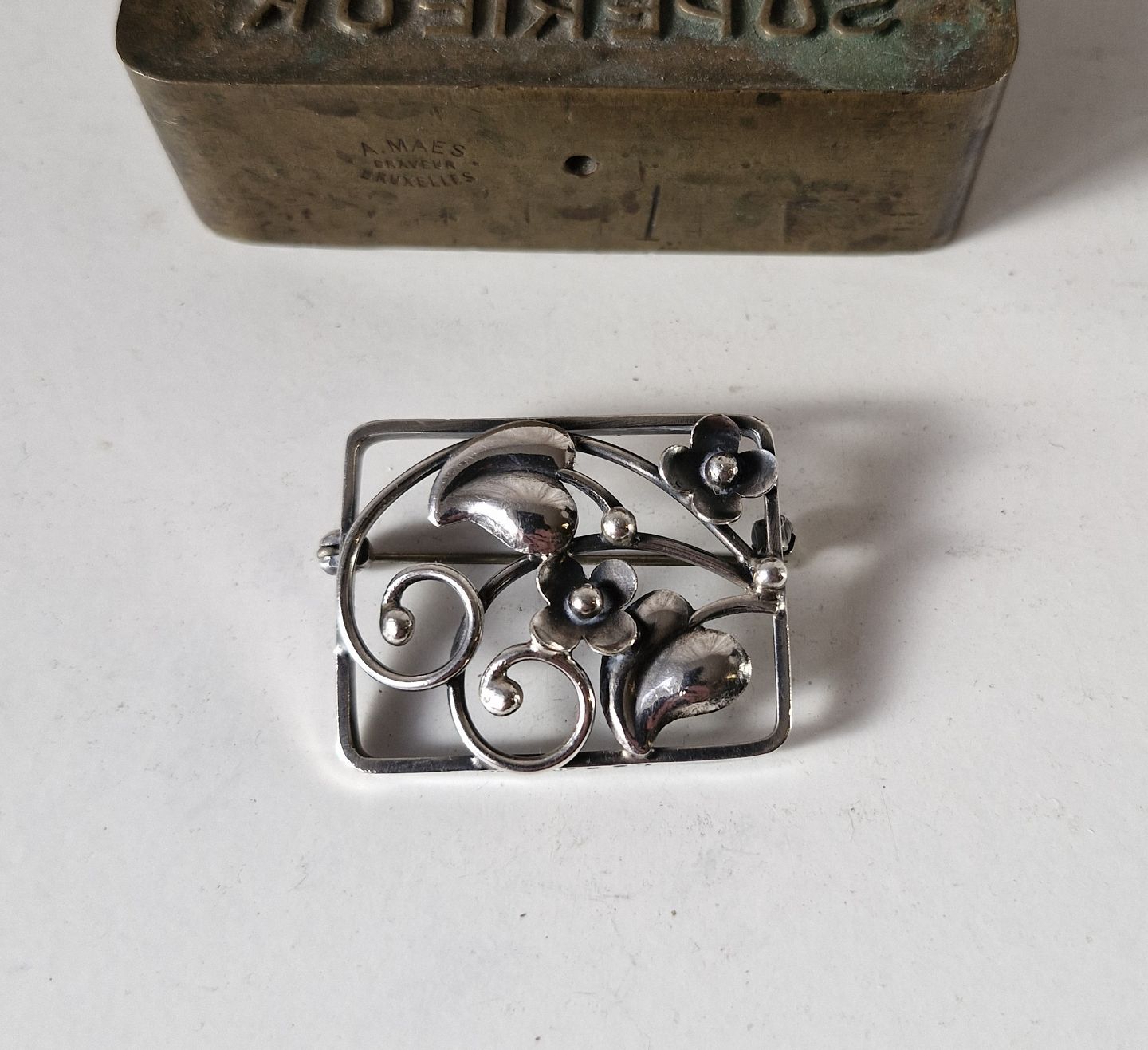 Broche i sølv dekoreret med blomsterStemplet: Mesterstempel - 830s - 367