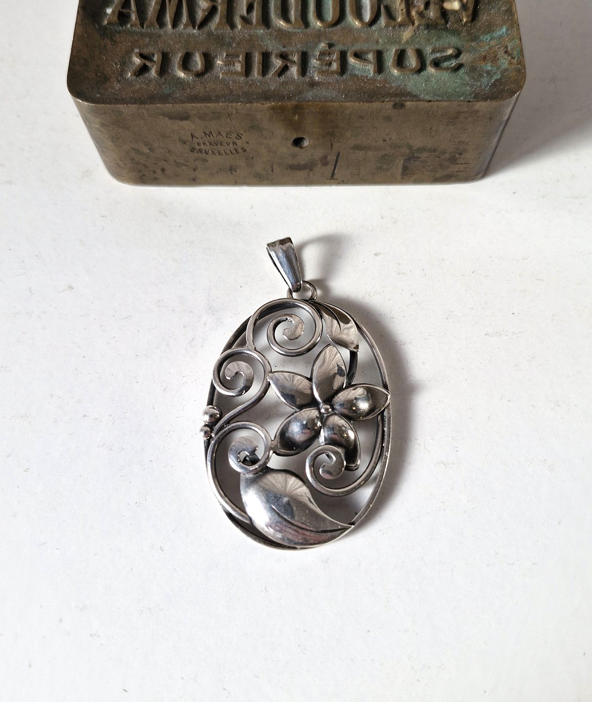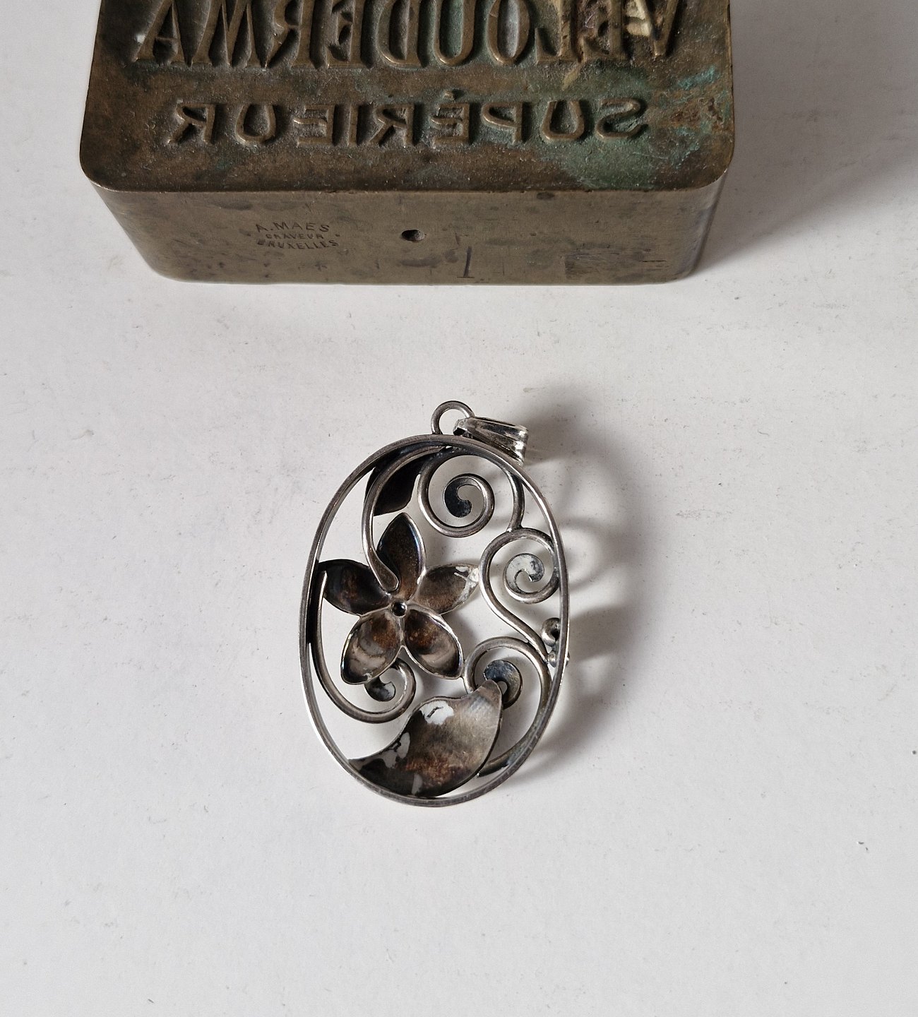 Bernhardt Hertz sølv vedhæng dekoreret med blomstStemplet: BH - Sterling - 930s