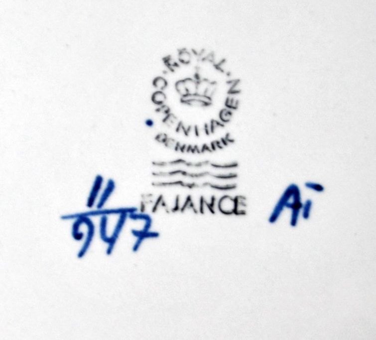 Royal Copenhagen, dyb tallerken, 947, Trankebar, 20. årh. København, Danmark. Stemplet. Dia.: 23 cm. 1. Sortering. Pt.: 37 stk. på lager. Emne nummer: 20743