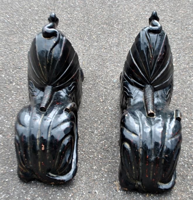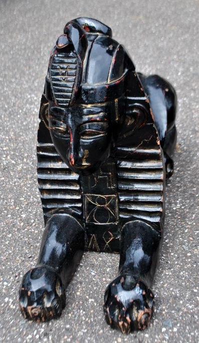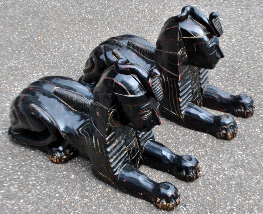 Par store dekorativ sortmalede træ sfinkser, 20. årh, Ægypten. L.: 65 cm. B.: 22 cm. H.: 44 cm.NB: Perfekt stand!