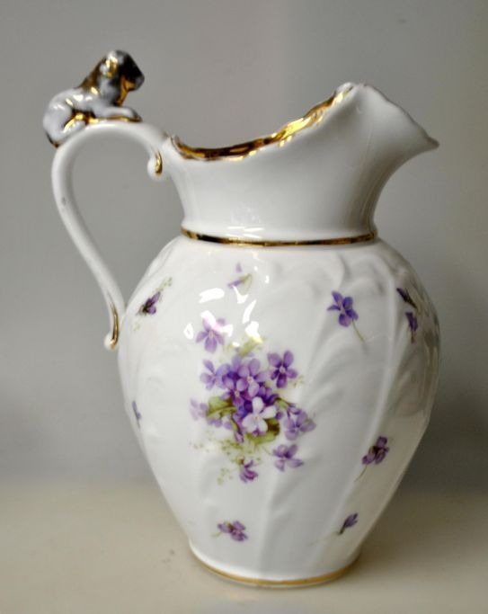 Porcelæns løve chokoladekande, C. T. Altwasser, 19. årh. Tyskland. Hvidt porcelæn. Dekoration i form af blomster i overføringsteknik. Stemplet. Med forgyldninger. Uden låg. H: 24 cm.Emne nummer: 28278
