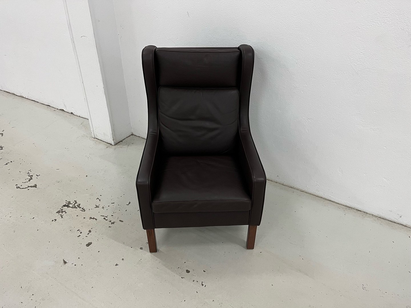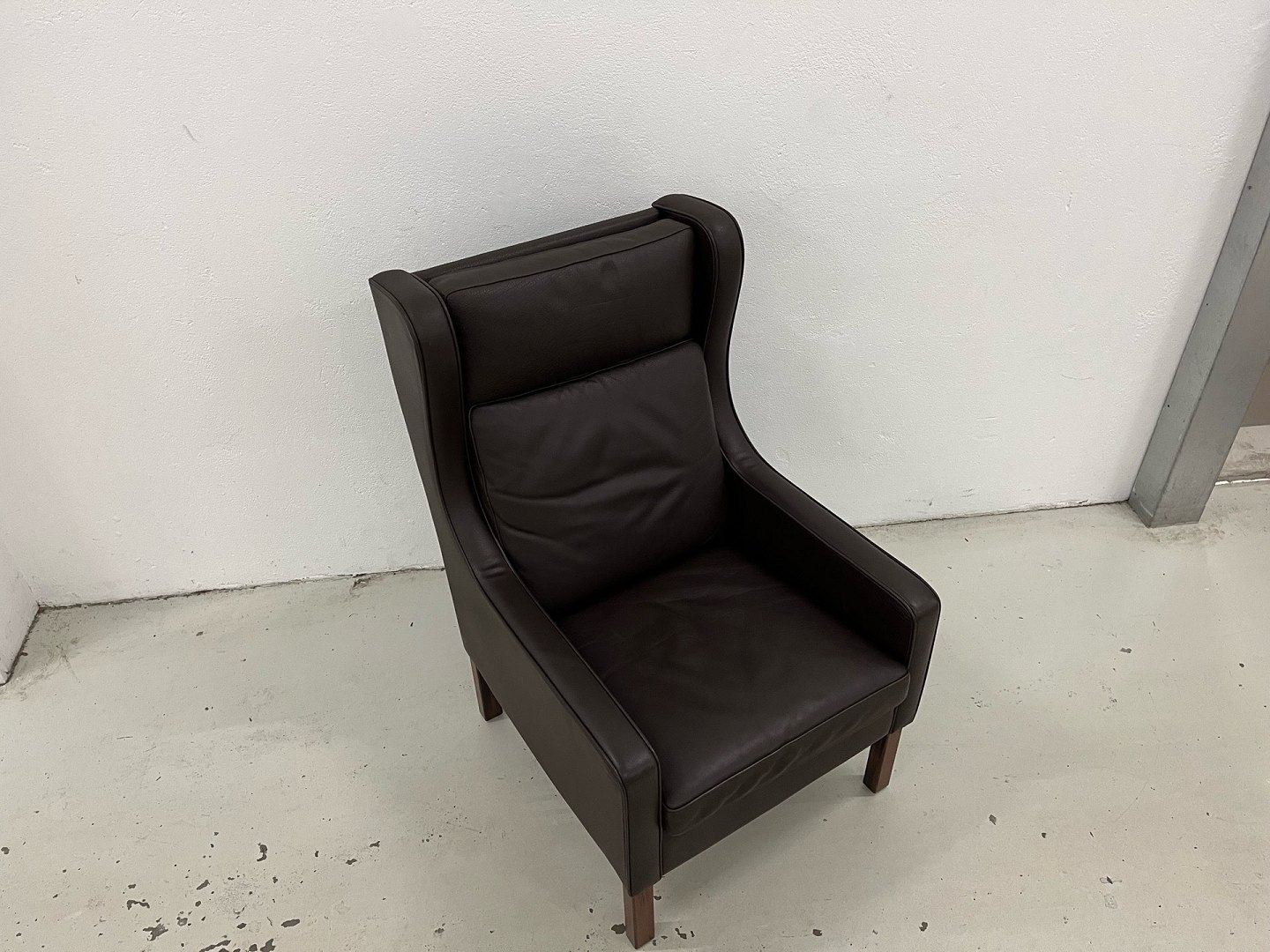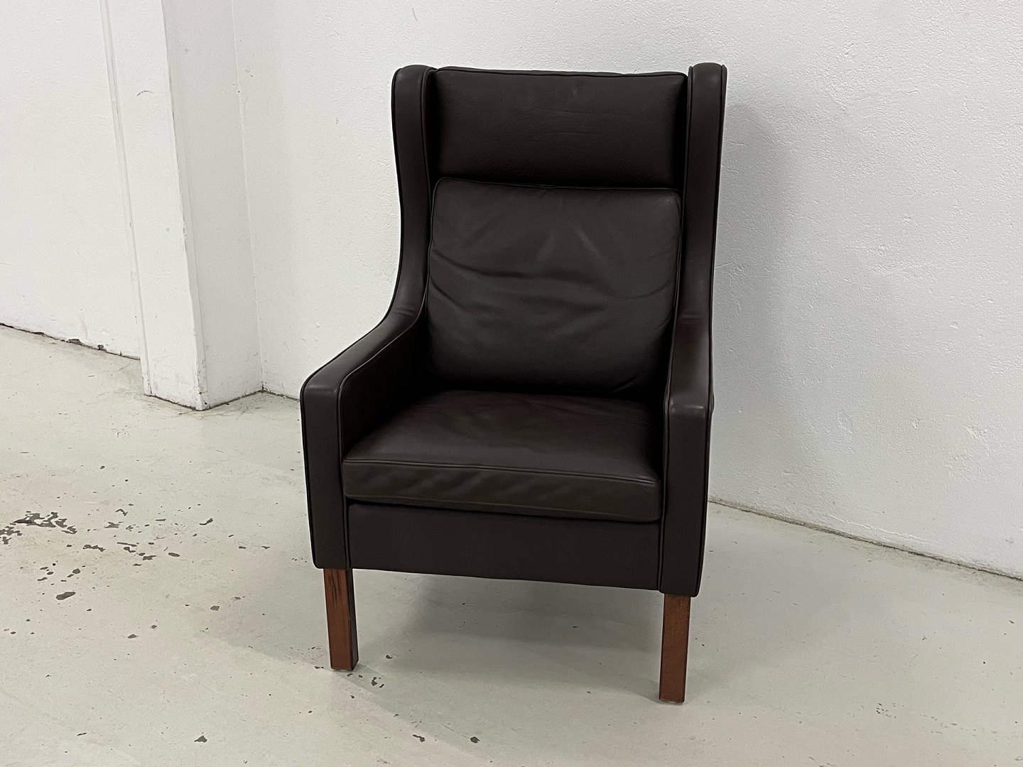 Mogens Hansen MH195 øreklapstol i Dark Brown mammut læder og med ben i bejdset Eg.Nypris 22.445,-Stolen er netop afrenset og læderbehandlet og står i virkelig fin stand.