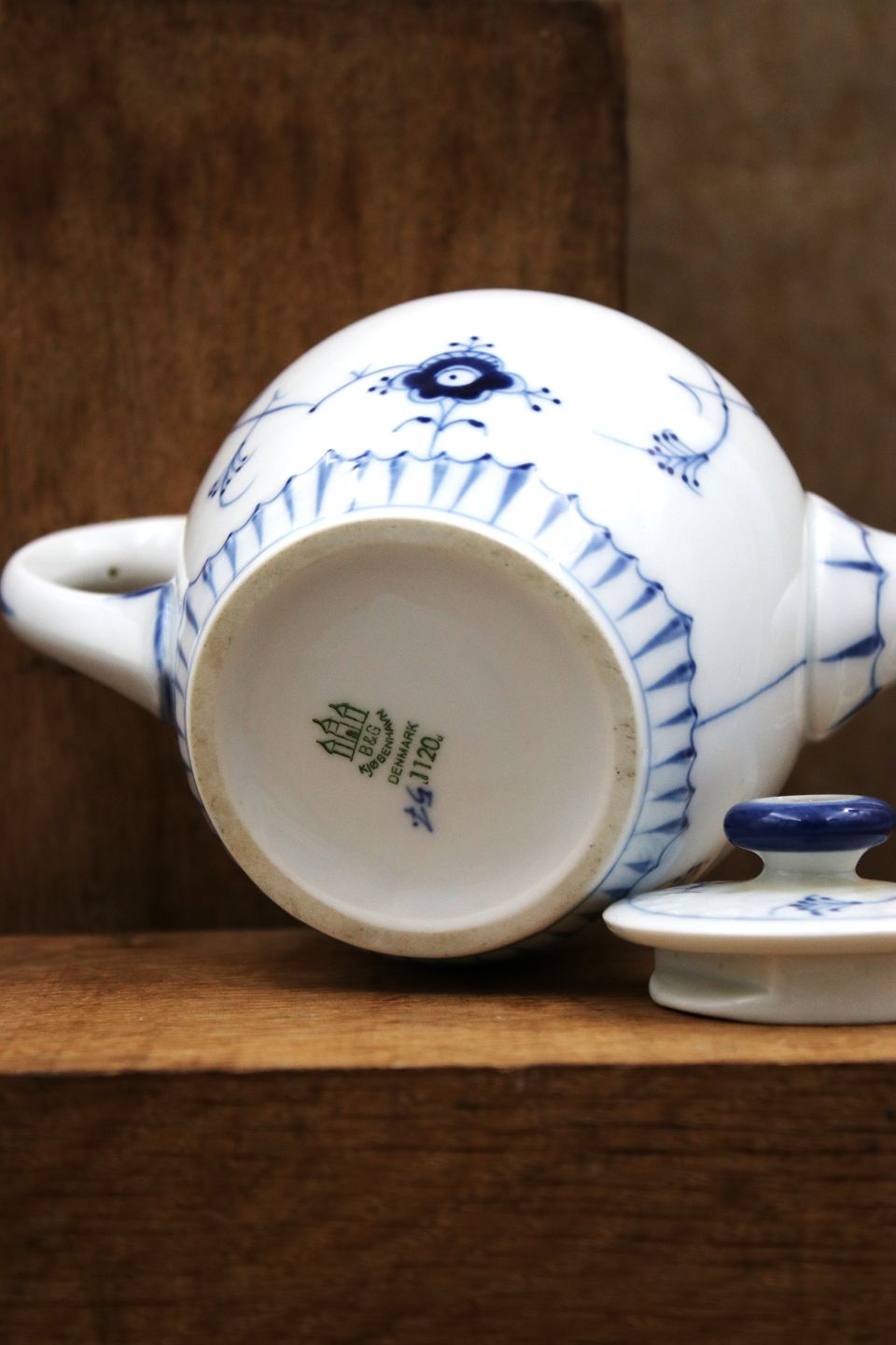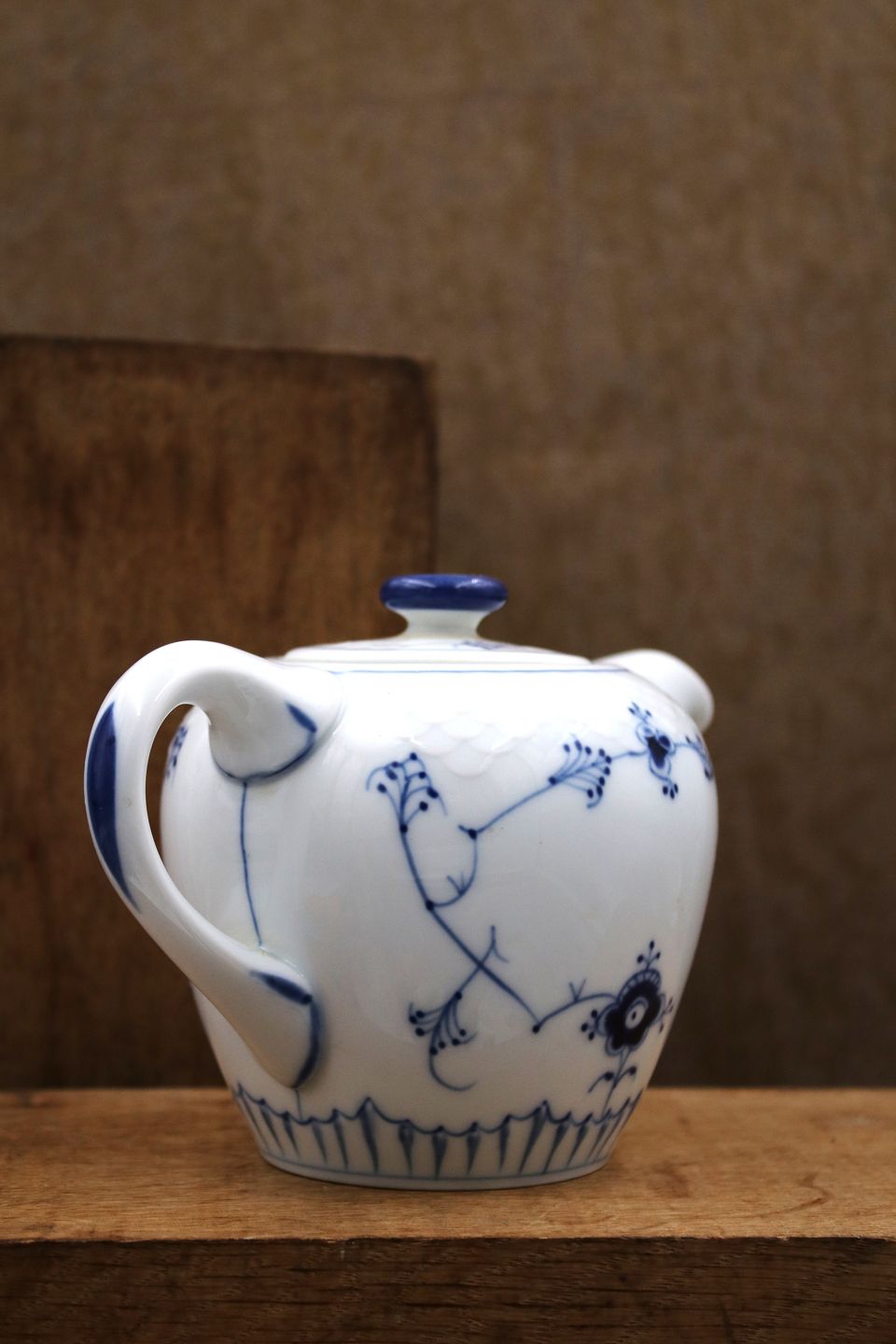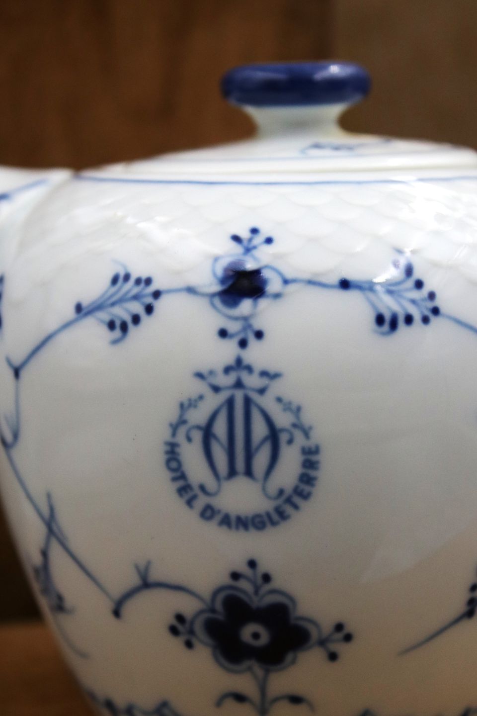 Bing & Grøndahl Blåmalet / Musselmalet tekande med logo fra Hotel D`Angleterre. Dekorationsnummer: 1020. H: 11cm.Er i hel og i fin stand.
